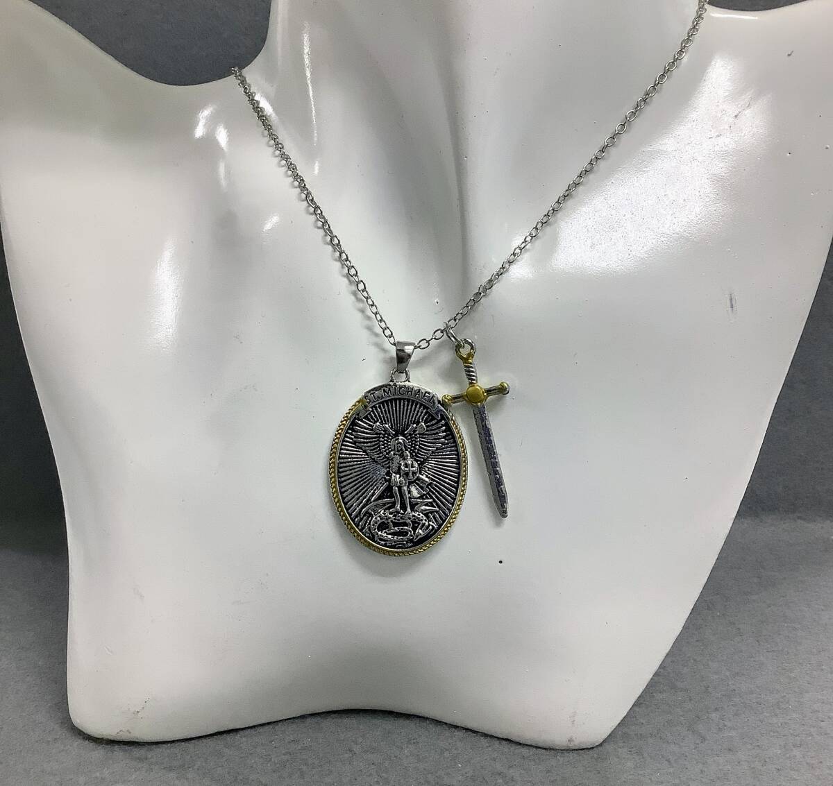 聖ミカエルは悪を退け、正義を守る存在として広く崇拝されており、その姿を象ったこのネックレスは、勇気と守護の象徴です。