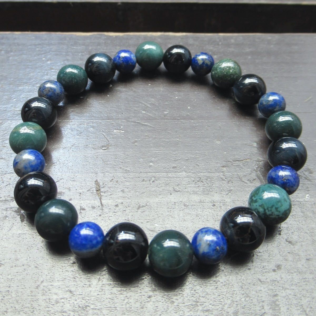 ブルータイガーアイxブラッドストーンxラピスラズリブレスレット 天然石 パワーストーン