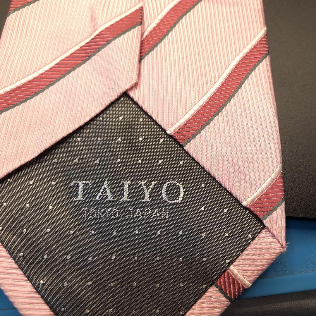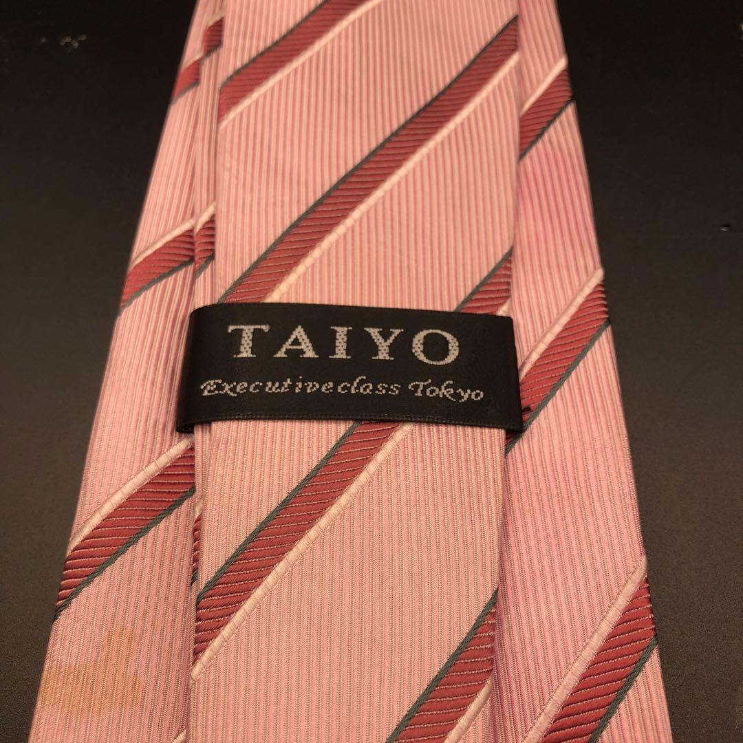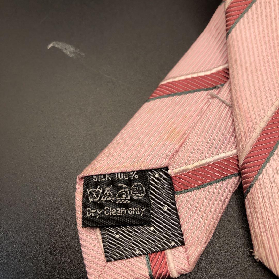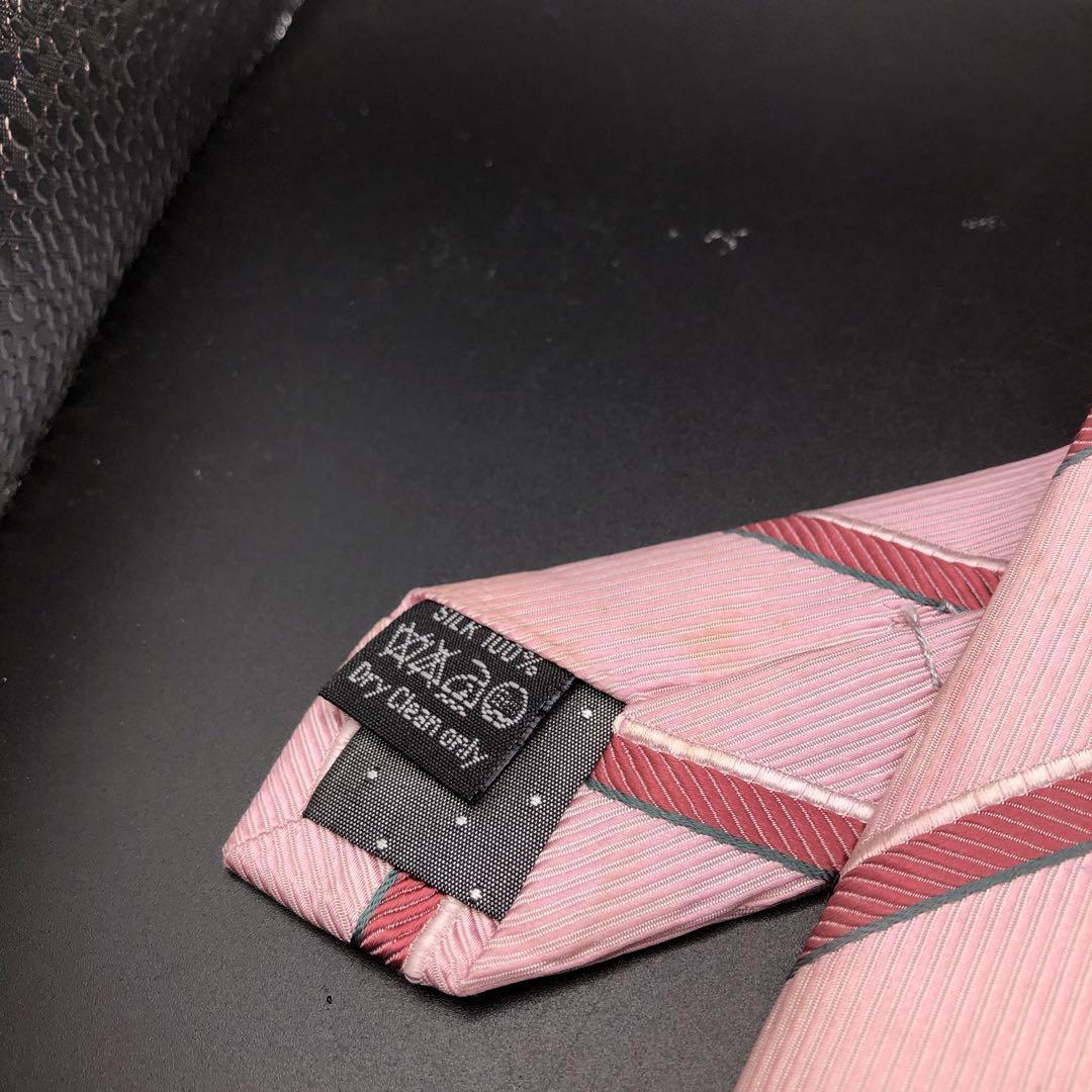 ピンクと赤のストライプが特徴のシルク製ネクタイ。