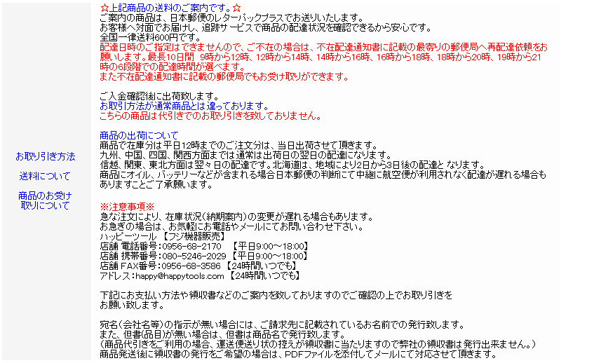| ☆☆ハッピーツール大特価!注目商品!!代引発送不可!!☆☆ | |