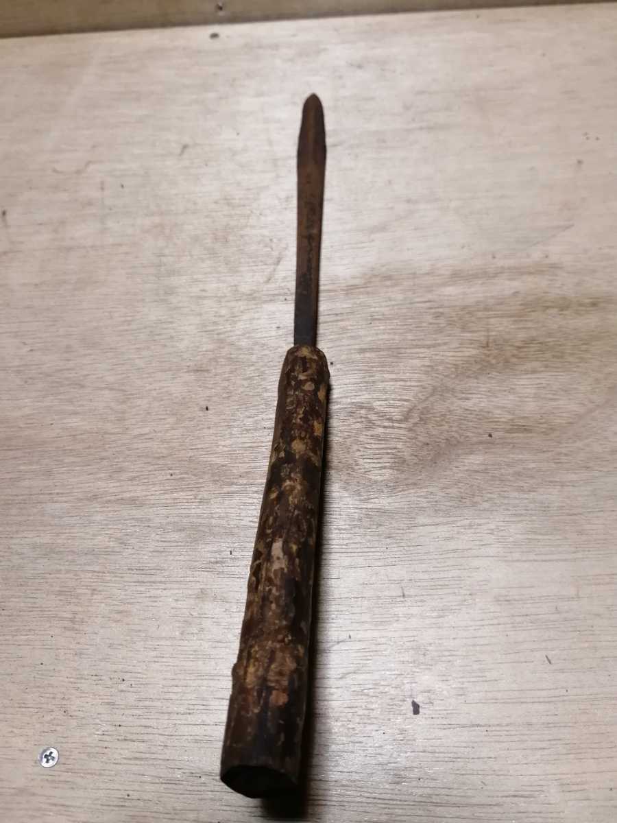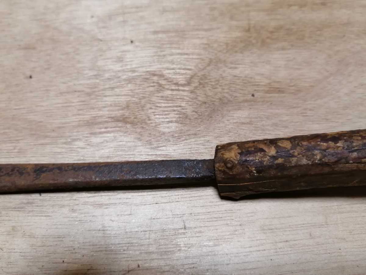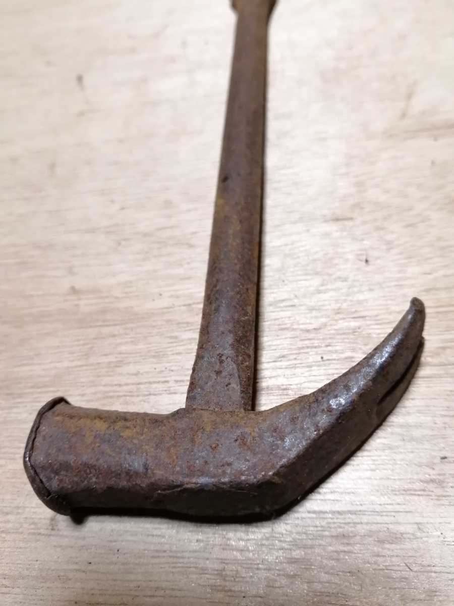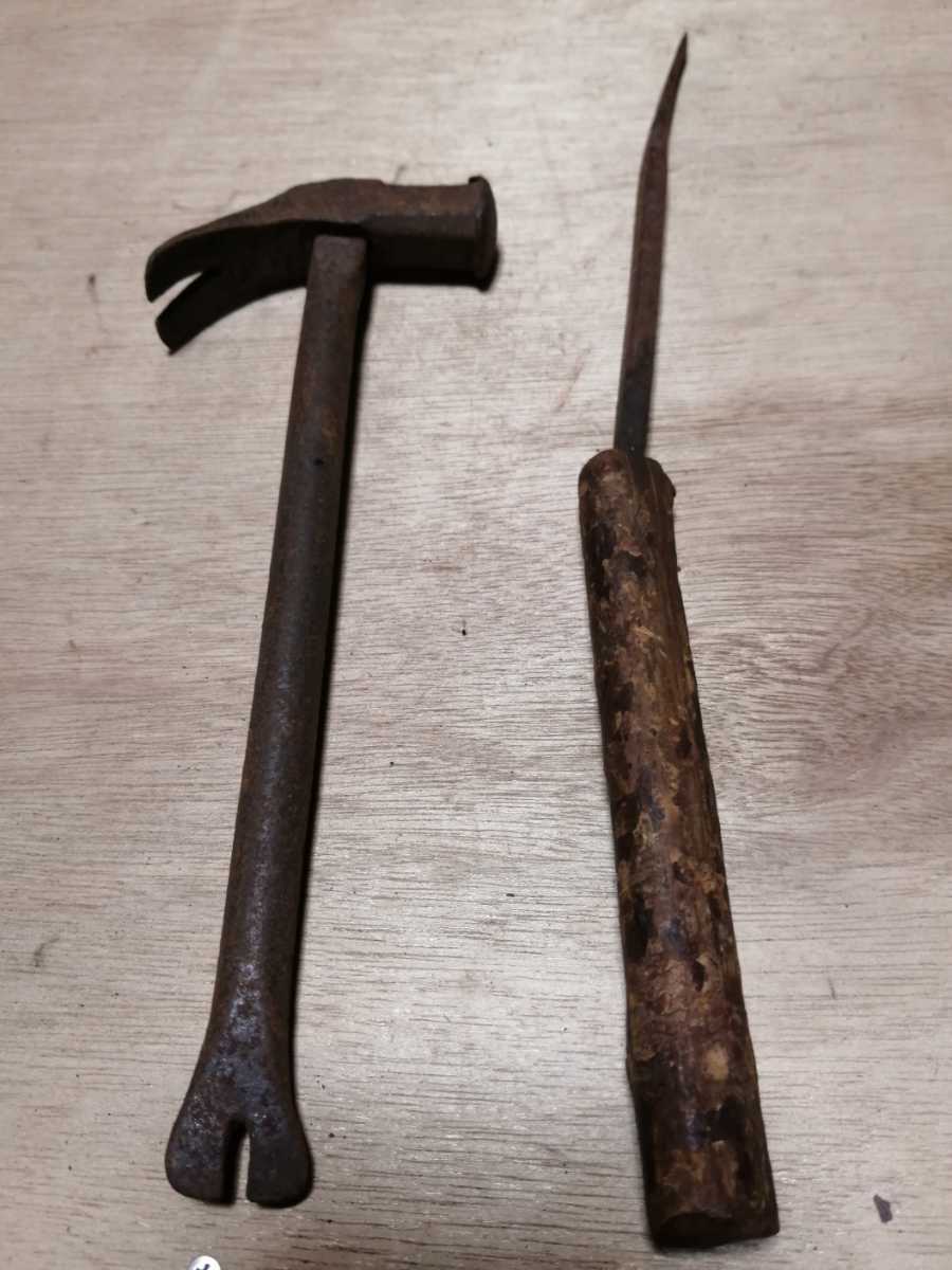 大正頃の金槌と明治のナマゾリです。金槌は釘抜きと一体化した鉄製です。錆びが出ていますが朽ち込みはありません。ナマゾリは古い形態の彫刻刀で木の柄は自然木をそのまま使っています。研げばいい刃が出て来きそうです。