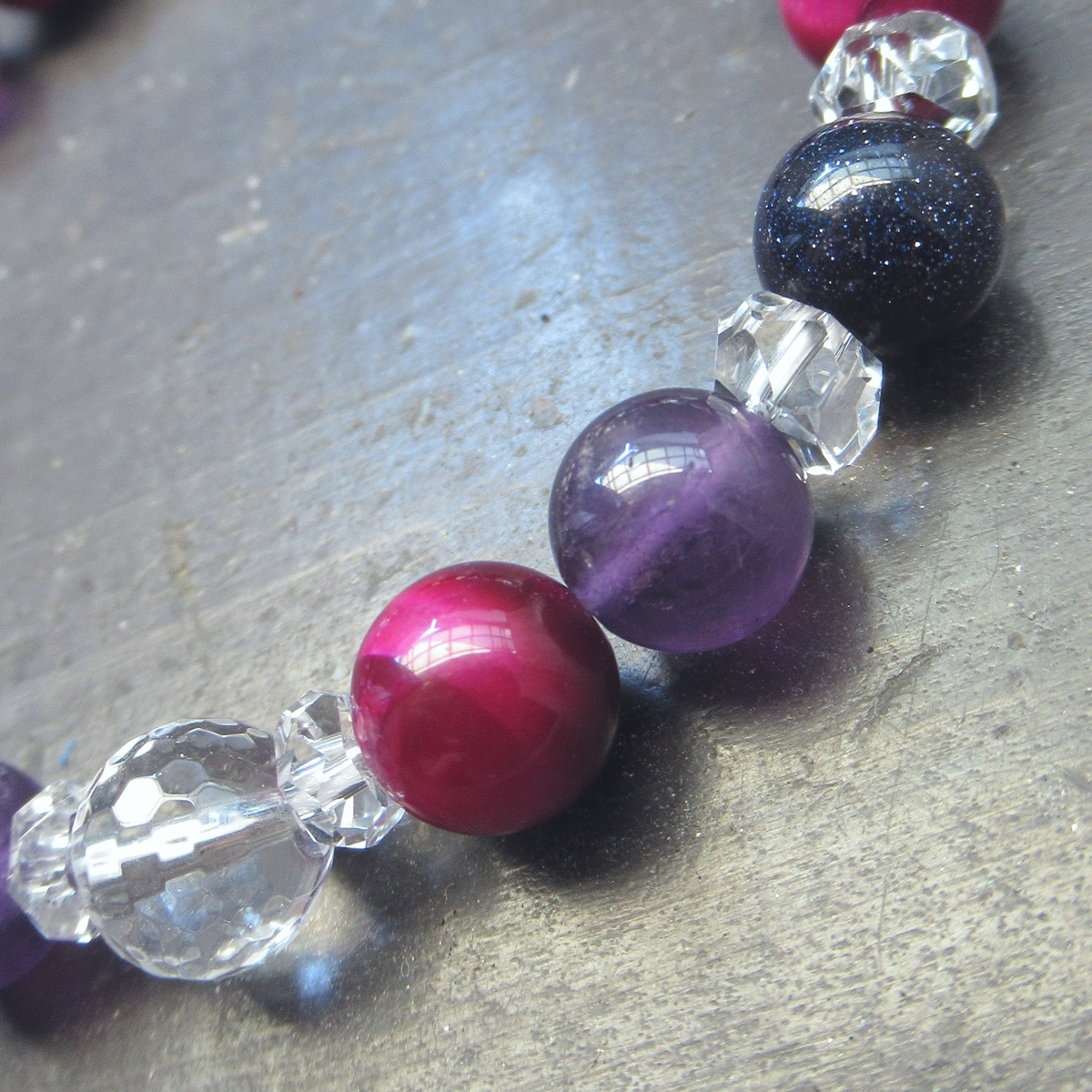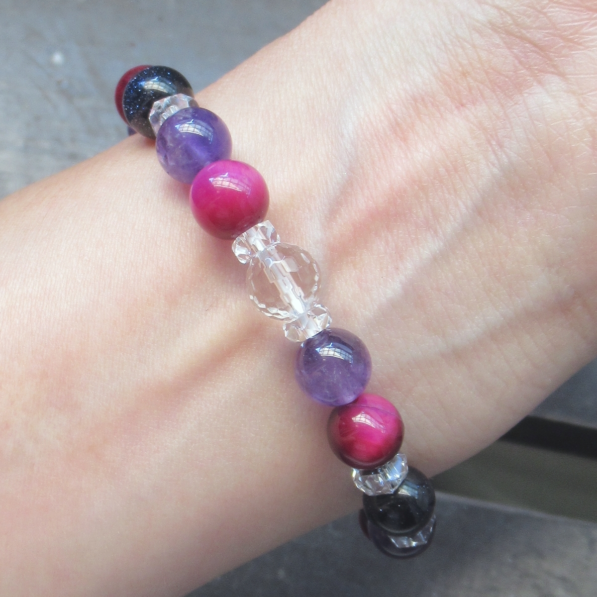 アメジストxピンクタイガーアイxブルーゴールドストーンブレスレット 天然石 パワーストーン