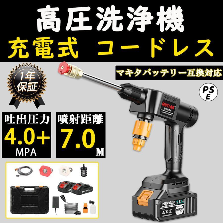 高圧洗浄機 コードレス 充電式 マキタ18Vバッテリー対応 バッテリー充電器も付し 強力 家庭用 洗車タオル 小型 洗車 大掃除 自吸式 PSE認証