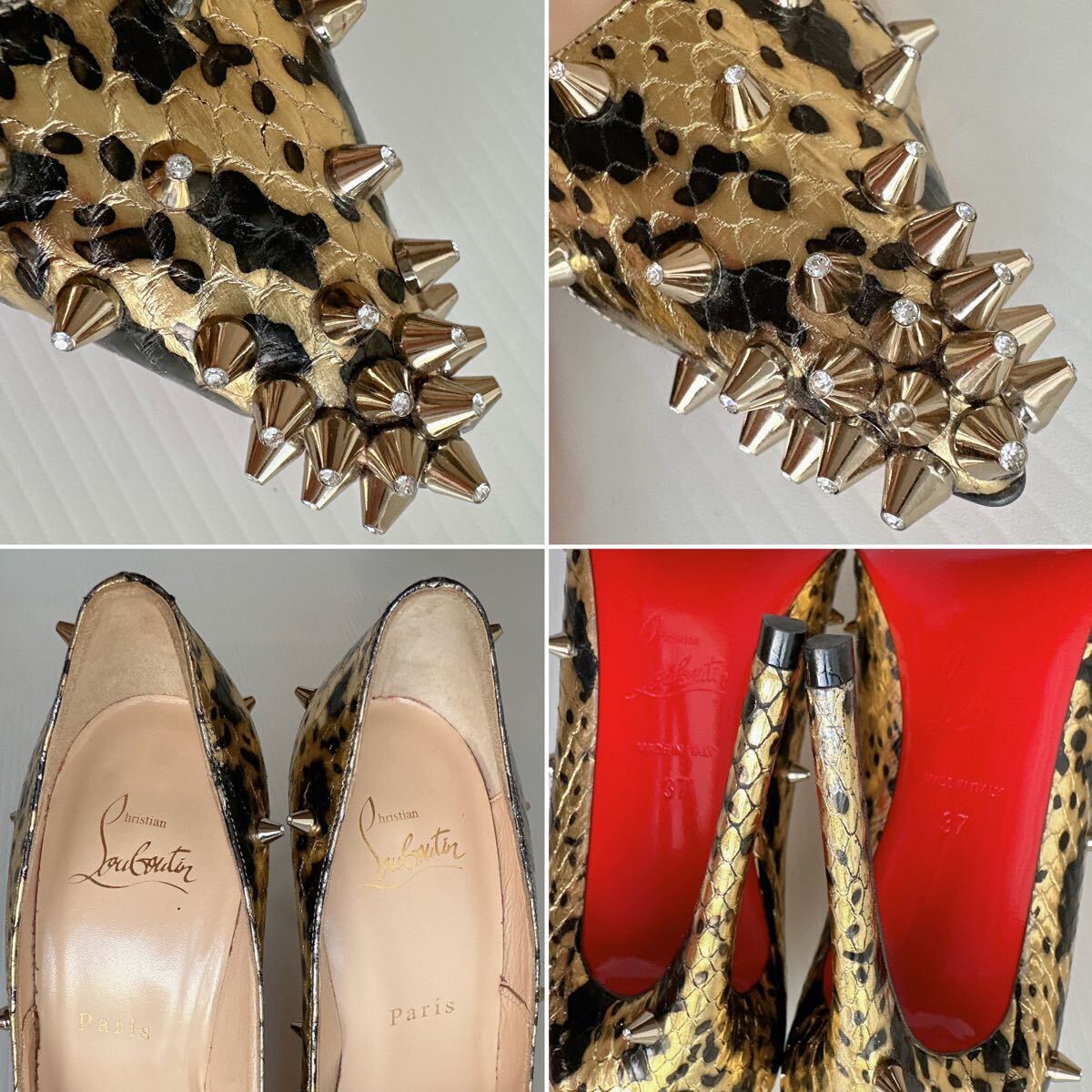 Christian Louboutin クリスチャンルブタン スパイクスタッズ ラインストーン付き ハイヒール ピンヒール パンプス サンダル ポインテッドトゥ 靴 イタリア製 希少モデル 正規品 本物