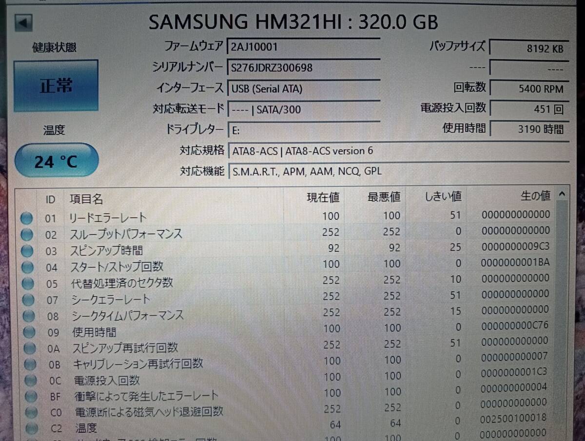 データー消去済みです。※HDDの使用時間は写真の通りです。