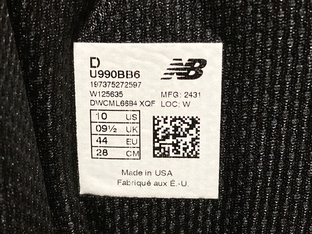 ■2024年製造、ニューバランス U990BB6 V6 トリプルブラックです。