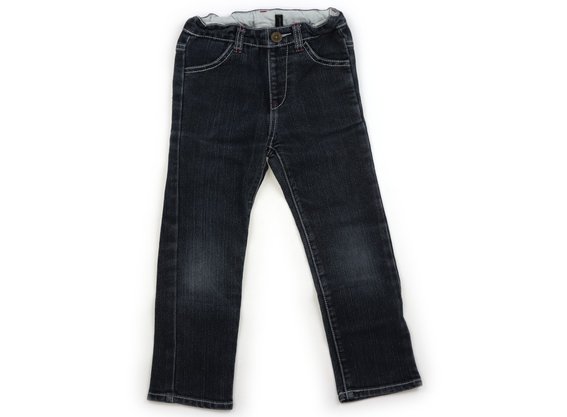綿・ポリエステルのデニム地。ややストレッチ性あり。ウエストはサイズ調整ゴムが付いています。膝周り擦れ感あり。普段使いにいかがでしょうか。
