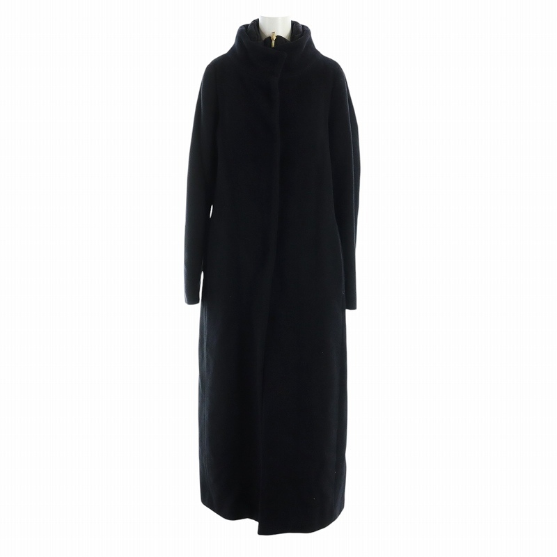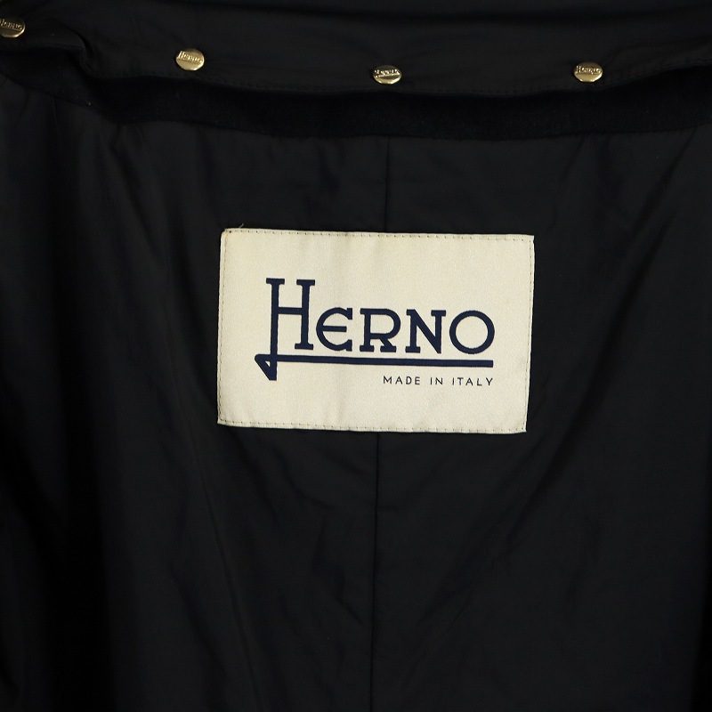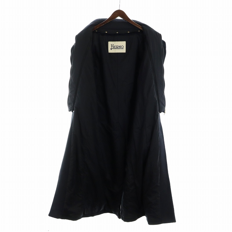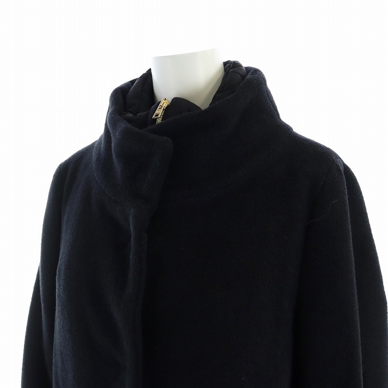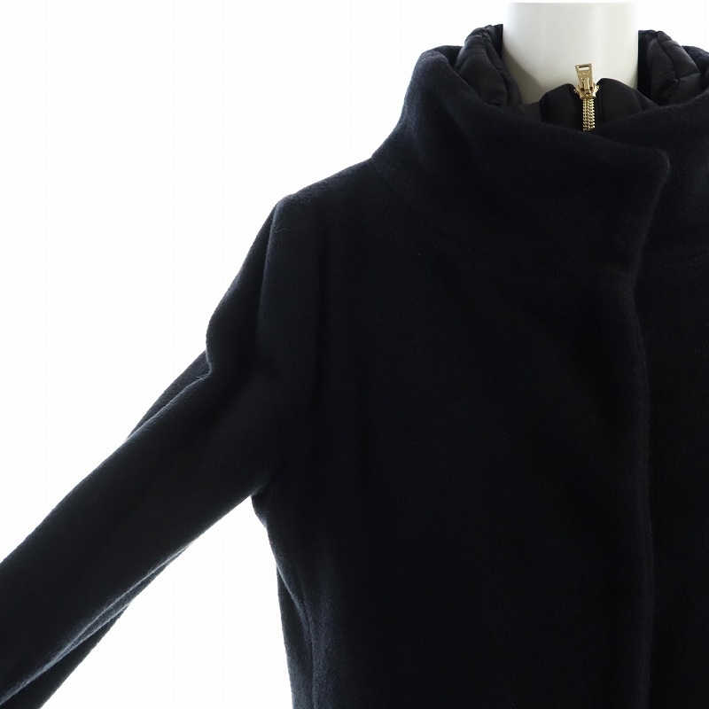 ヘルノ HERNO ロング コート ウール アンゴラ混 ジップアップ ジレ ライナー付き 42 M 黒 ブラック ■GY18 /MQ レディース