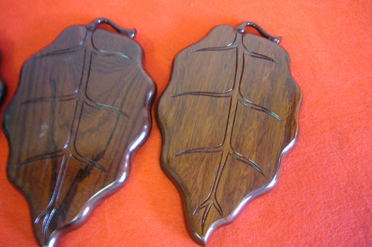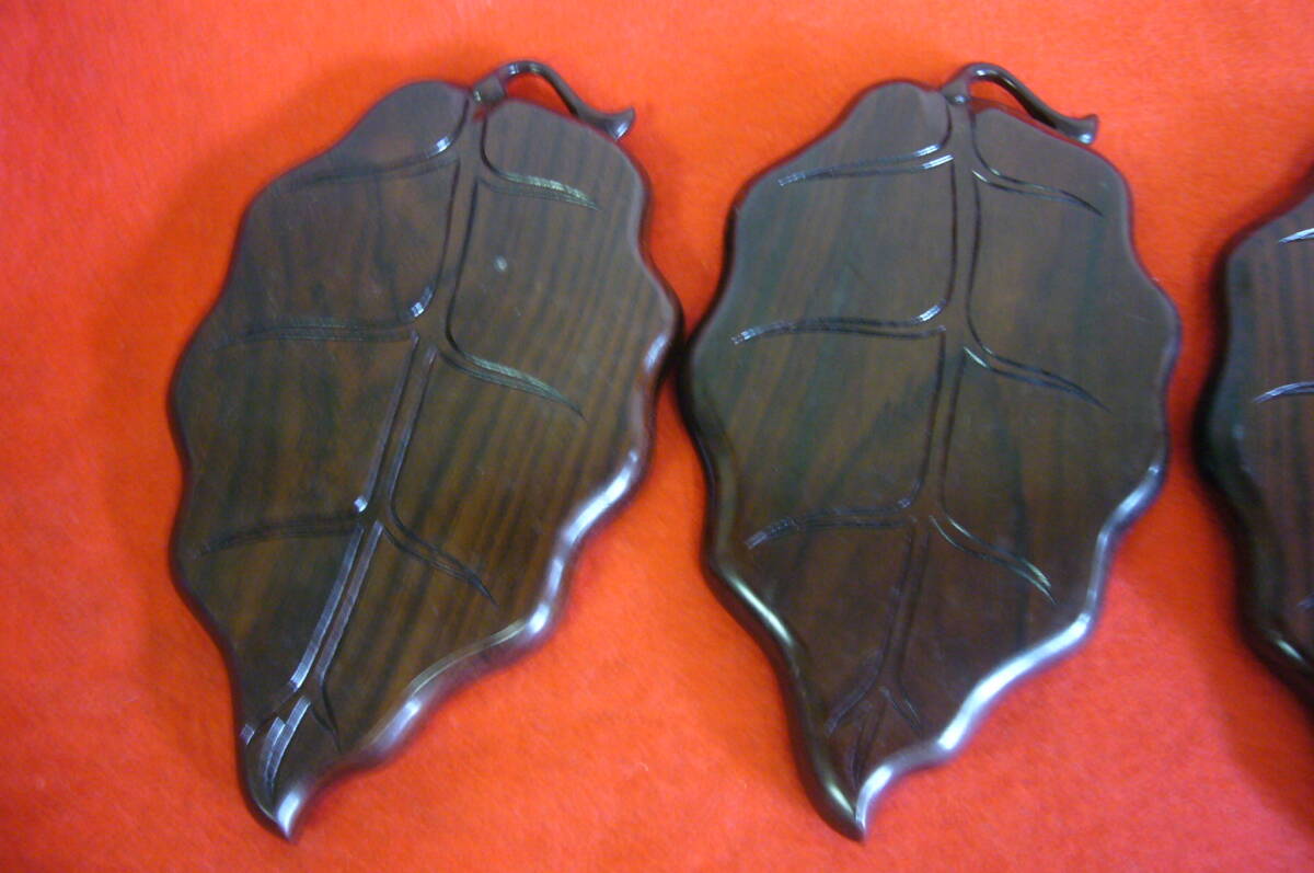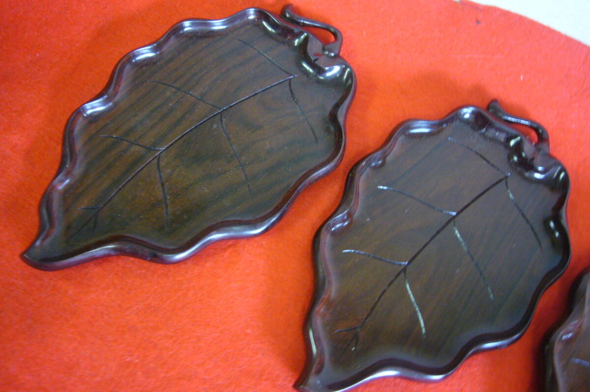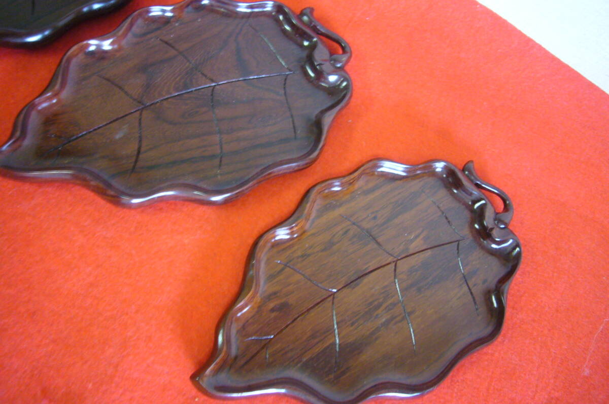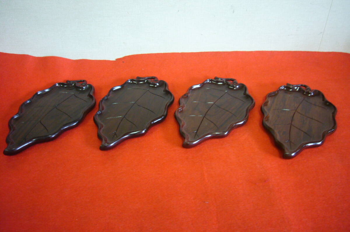 茶道具 唐木紫檀茶托 葉型 菓子皿 小皿 4枚 長さ約21cm 黒檀 花梨