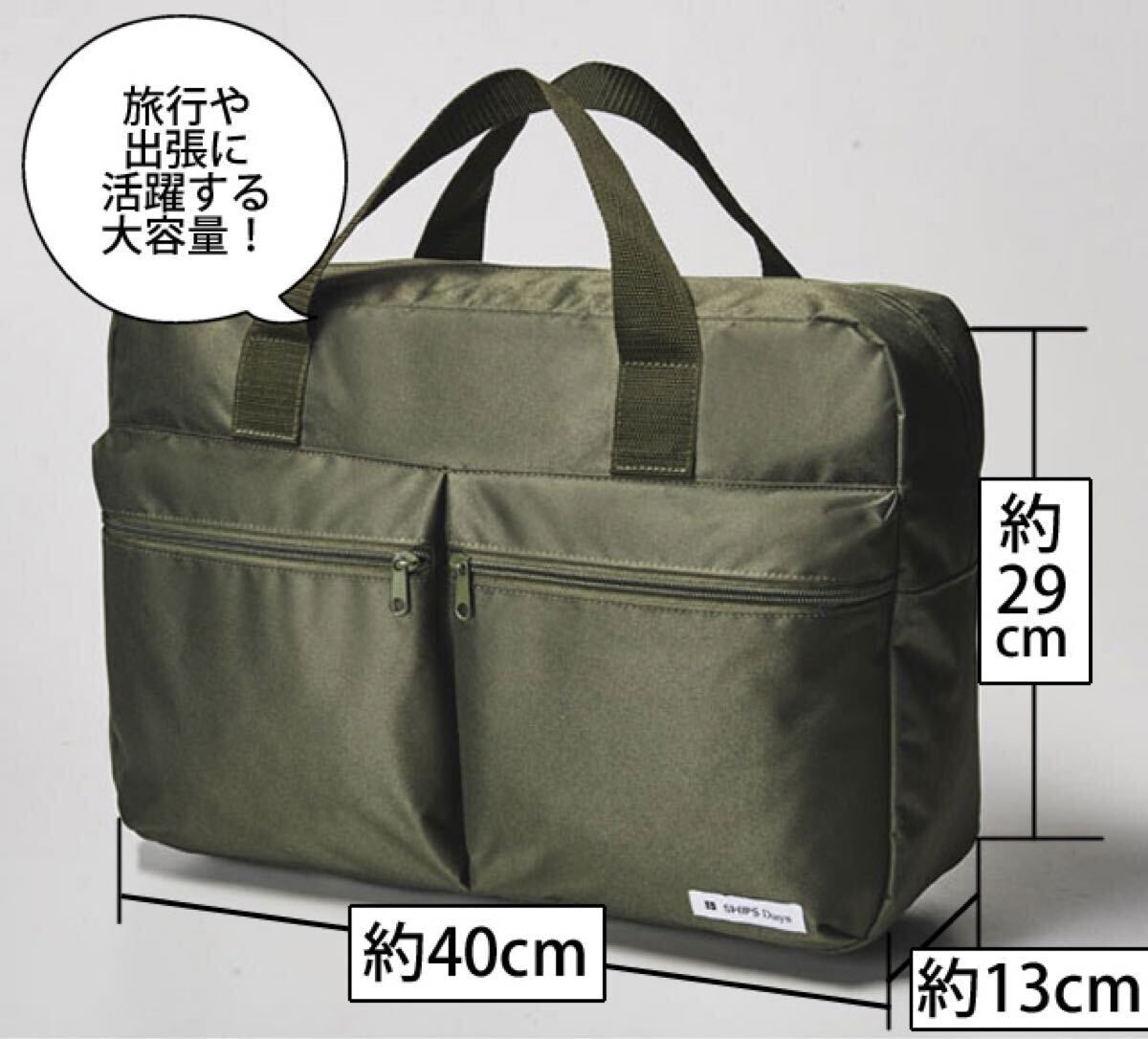 HIPS Days[フロントポケットが便利]大容量BIGボストンバッグ(カーキ)旅行出張ゴルフビジネススポーツ[かっこい][女性にも]シップスデイズ