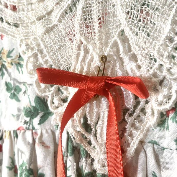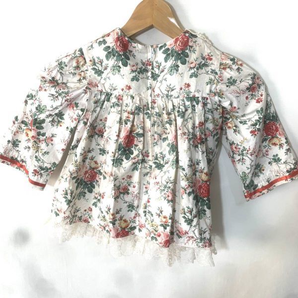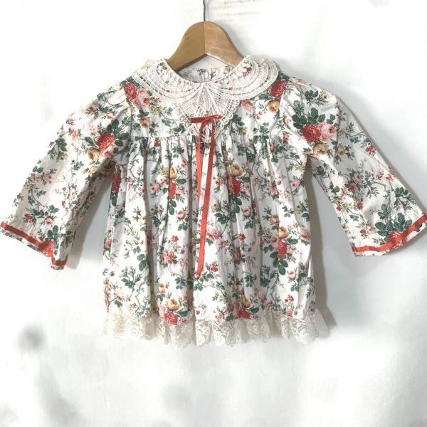 ■GIRLS USA製 ビンテージ little elegants 花柄プリント 長袖ドレス 古着 レース 総柄 リボン■