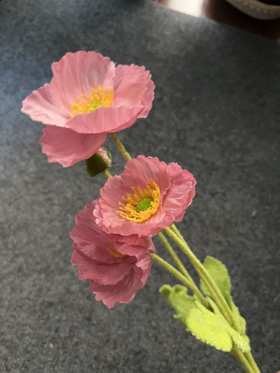 植毛加工(フロッキング加工)が施された虞美人(ポピー)の造花です。