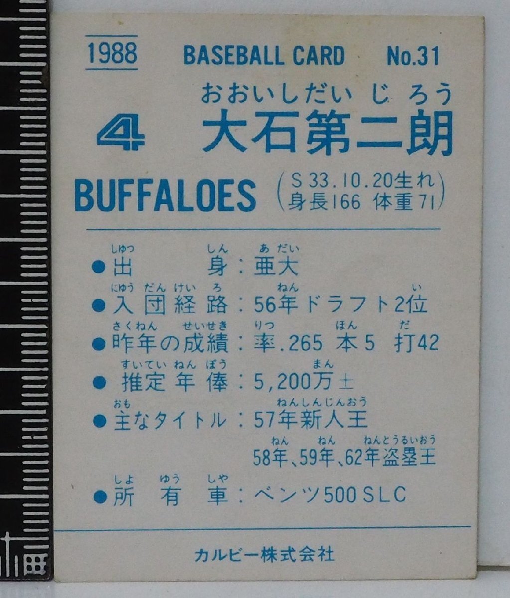 88年カルビー プロ野球カードNo.31【大石 第二郎 近鉄バファローズ エラー】昭和63年1988年 当時物Calbeeおまけ食玩BASEBALL【中古】送料込