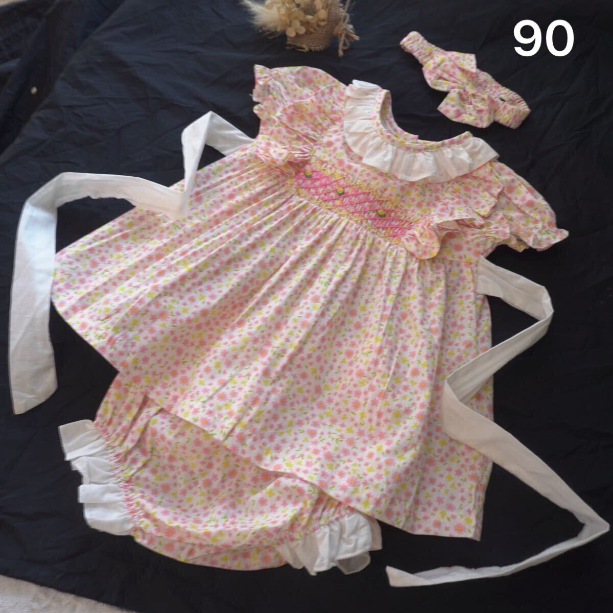 ・胸元のスモッキング刺繍は職人により一枚一枚施されました。子供服 キッズ服 女の子 お姫様
