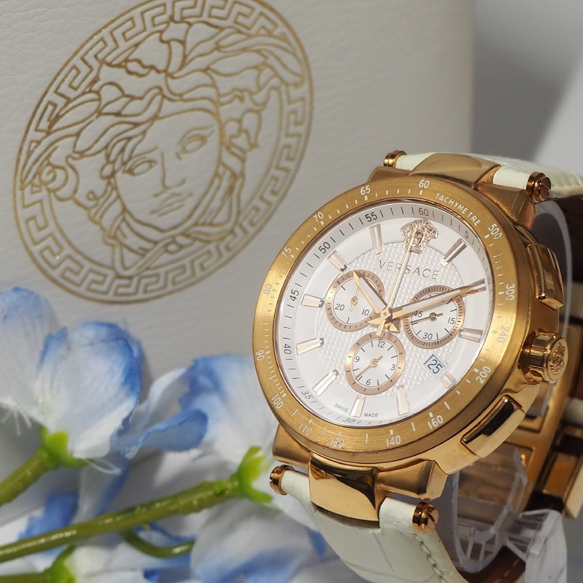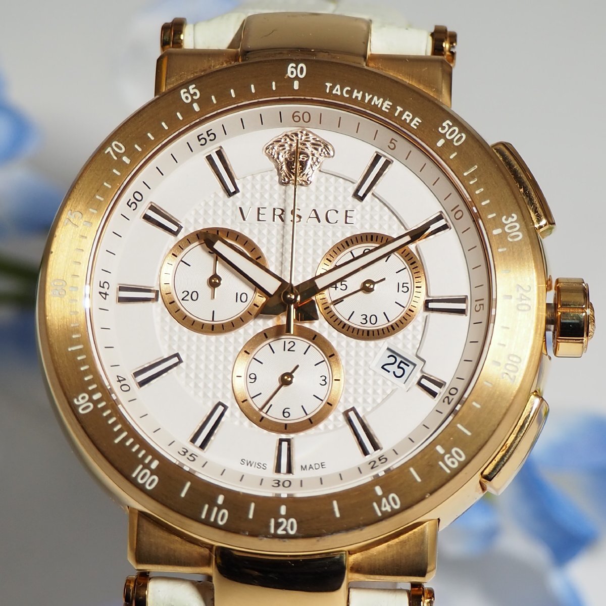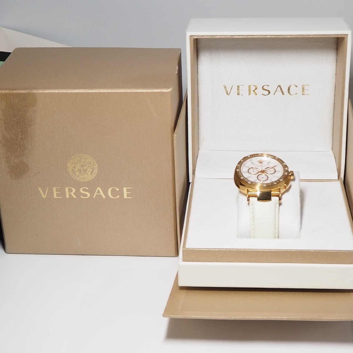 ★★★★ ヴェルサーチ VERSACE クロノグラフ デイト メデューサ メンズ 腕時計 箱 F513 ゴールド 中古★★★★ |