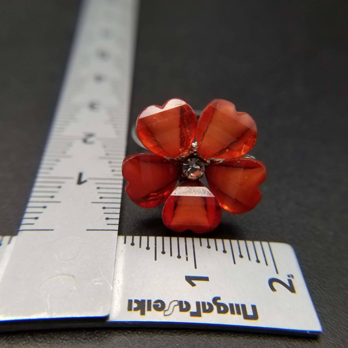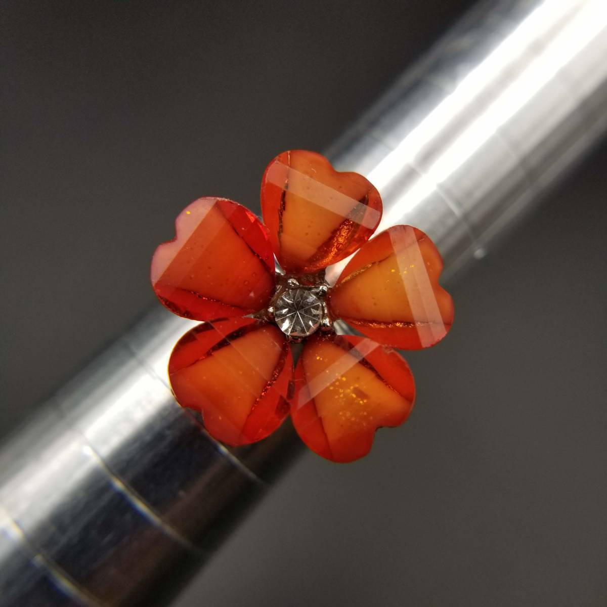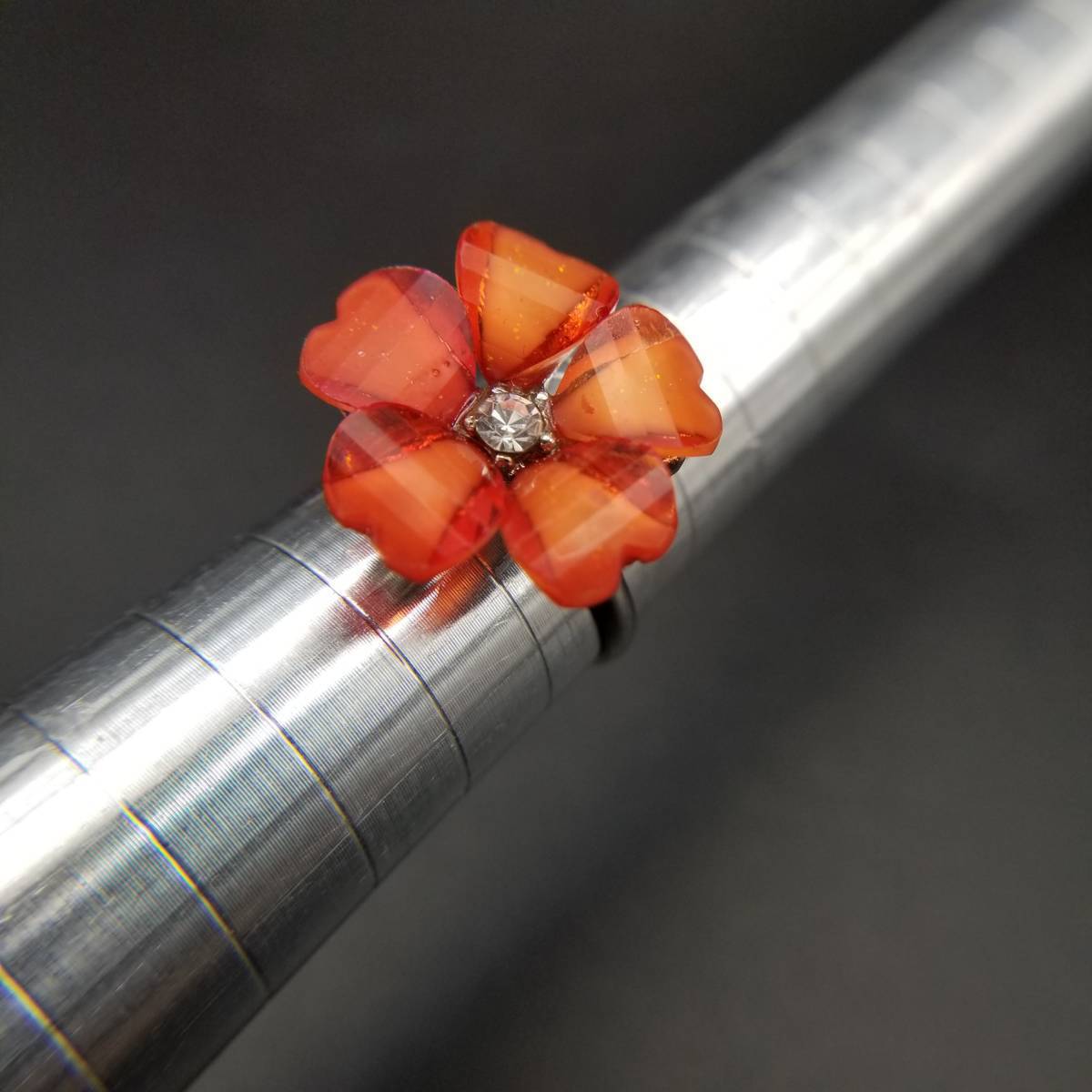 オレンジのお花 ハート型の花びら ヴィンテージ フラワー リング 指輪 レトロ ファッションジュエリー 艶感 存在感 フリーサイズバンド Y6-K