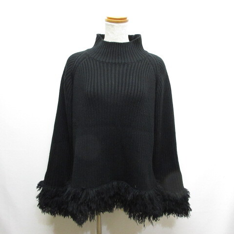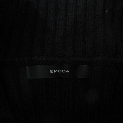 エモダ EMODA ハイネック フリンジ ニット プルオーバー F 黒 ブラック セーター レディース
