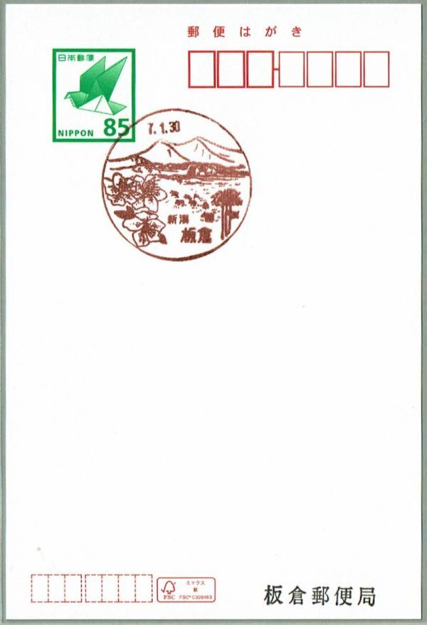 2024(令和7)年1月30日限りで使用廃止された、風景印を官製はがきに押印しています。