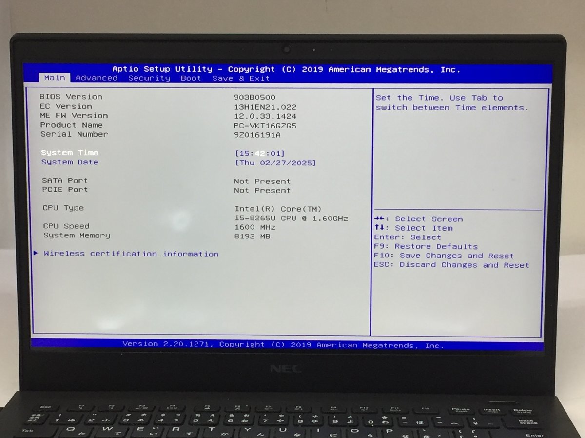 ジャンク/ NEC PC-VKT16GZG5 Intel Core i5-8265U メモリ8.19GB ストレージ無し 【K09495】