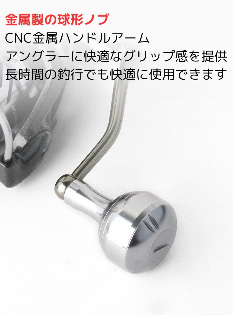 金属製の球形ノブに対応し、CNC金属ハンドルアーム、アングラーに快適なグリップ感を提供。長時間の釣行でも快適に使用できます