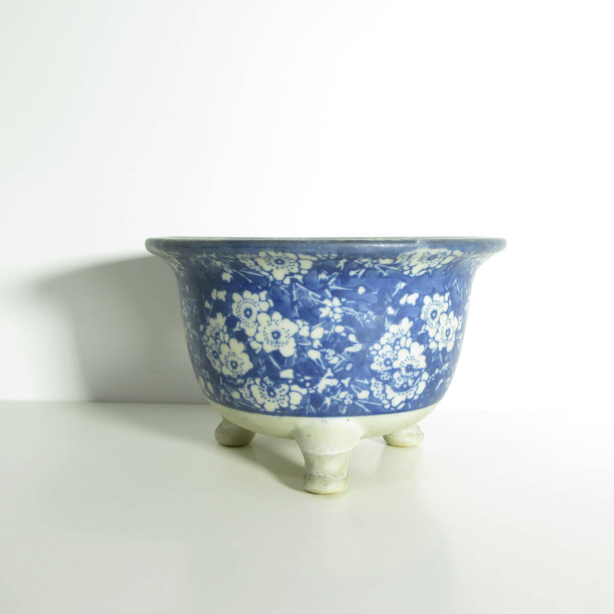 『 染付梅花模様入外縁丸鉢 』A-57/ 絵付き 盆栽鉢 山野草鉢 植木鉢 丸鉢 磁器鉢 / 盆栽 小品盆栽 に/【 盆栽用品・鉢 】