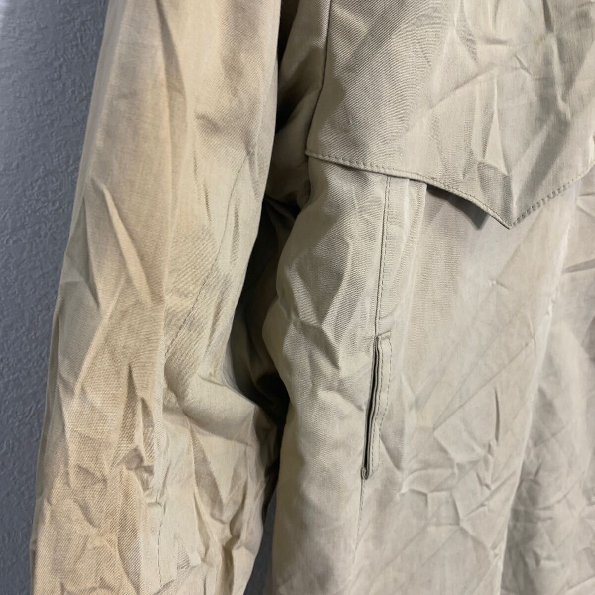 フロント第2ボタンに欠損、ライナーのジップに破損が有ります。