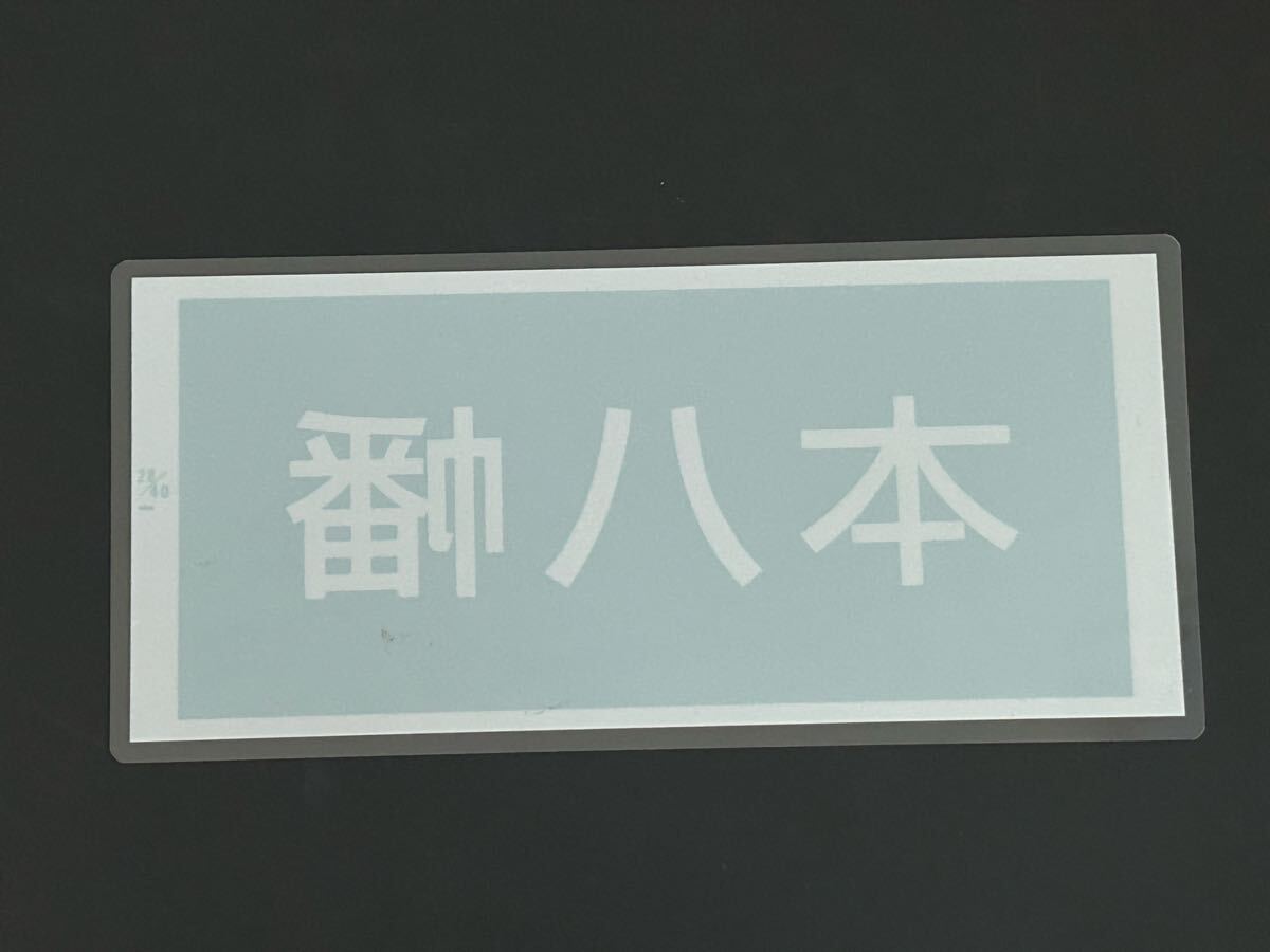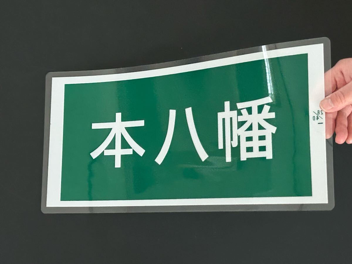 一般的なパウチフィルムとは違う150ミクロンフィルムを使用し、適度な硬さと厚みがあり、ガラス越しに眺めた方向幕を再現しています。