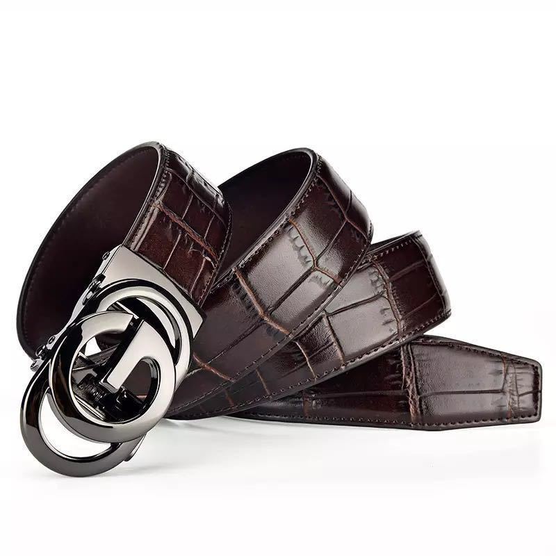 大人気のメンズクロコダイル柄ベルトです。 在庫に限りがあるのでお早めにご注文下さいませmm バックルの色がゴールド、シルバー、ブラック ベルトの色がブラック ブラウン ベルトの長さが110〜120センチまでお選び頂けます。 注文時にお知らせ下さい。