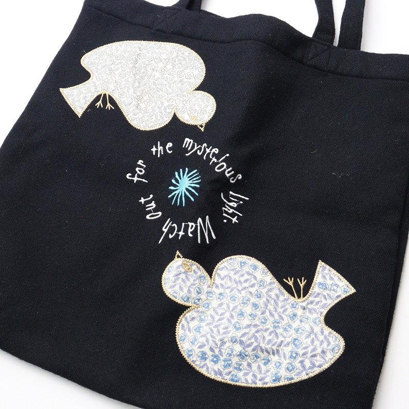 イデー プール IDEE POOL Whisper Bird Liberty パッチワークトートバッグ/ブラック リバティ 鳥 刺繍 ウール【2400014317497】