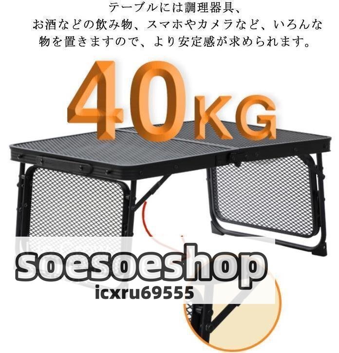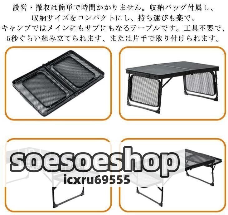 メッシュテーブル アウトドアテーブル 組立簡単 キャンプ レジャーテーブル アルミテーブル 折りたたみテーブル 折りたたみ スチール