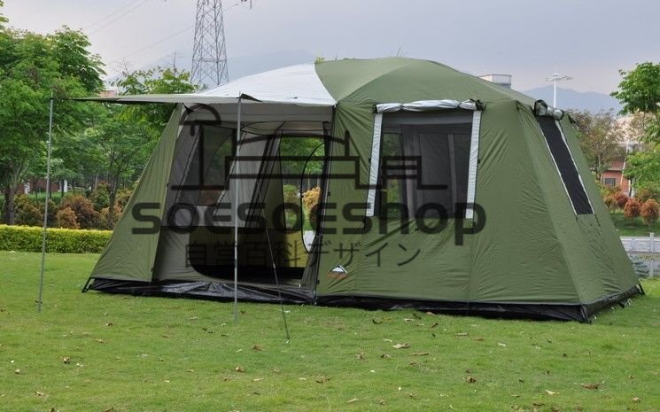 大型テント8人以上 2つのベッドルームと1つのリビングルーム アウトドア キャンプ 防雨/防風 /キャンプ/ピクニック/ビーチ用テント