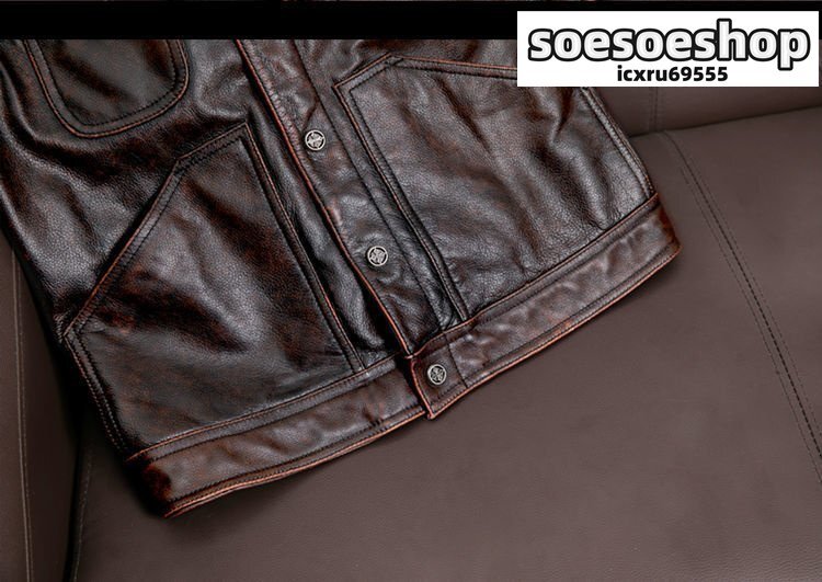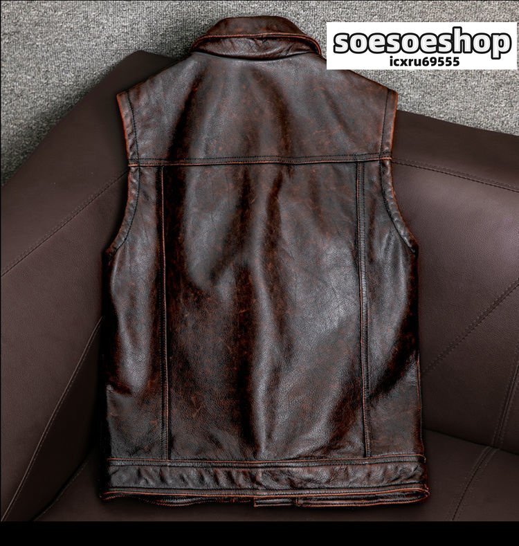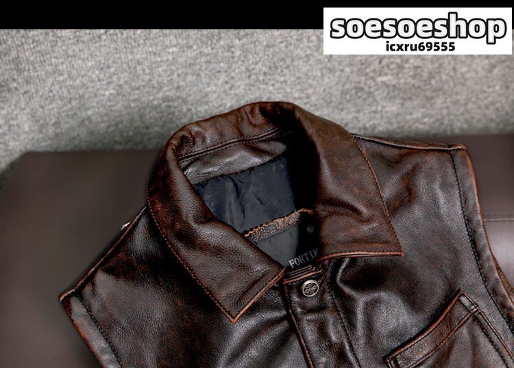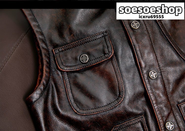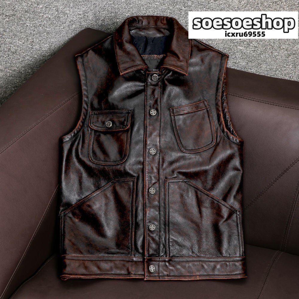爆売り!高品質★牛革 ハイソンハイド レザーベスト バイクベスト カウハイド 牛革 機関車 メンズファッション 革ジャン 本革 S~4XL