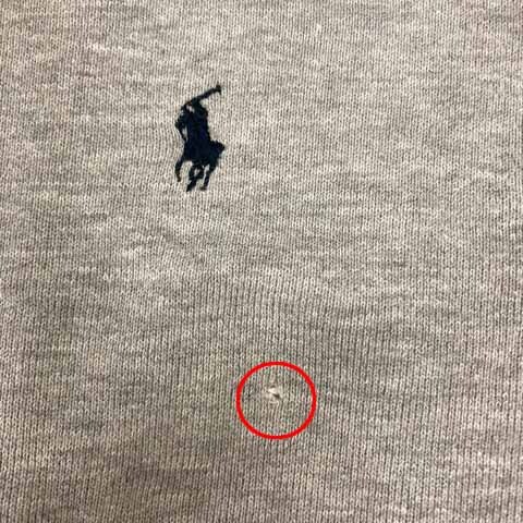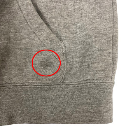 【状態】この商品には下記のようなダメージがあります。 ・両袖口に黄ばみ ・ロゴ刺繍付近に小さな穴あき ・前身頃左サイドポケット付近に2cm程のシミ 全体的に中古品としての使用感・着用感が見られるものの、普通にお使いいただける商品です。 ※全体的に中古品としての使用感と上記のようなダメージがありますが、通常使用には支障のない商品です。 掲載写真や記載内容をご確認いただき、ご理解の上ご購入ください。