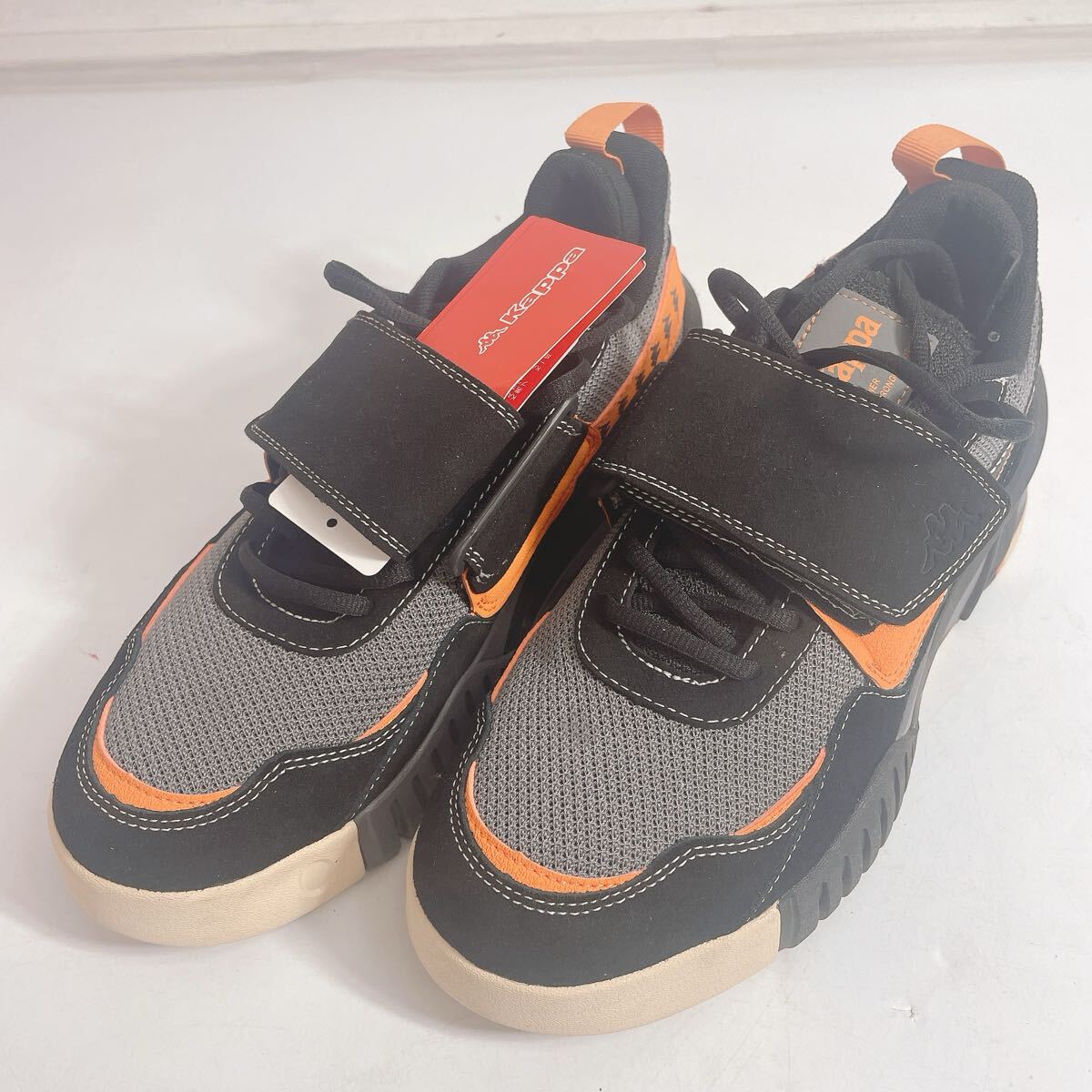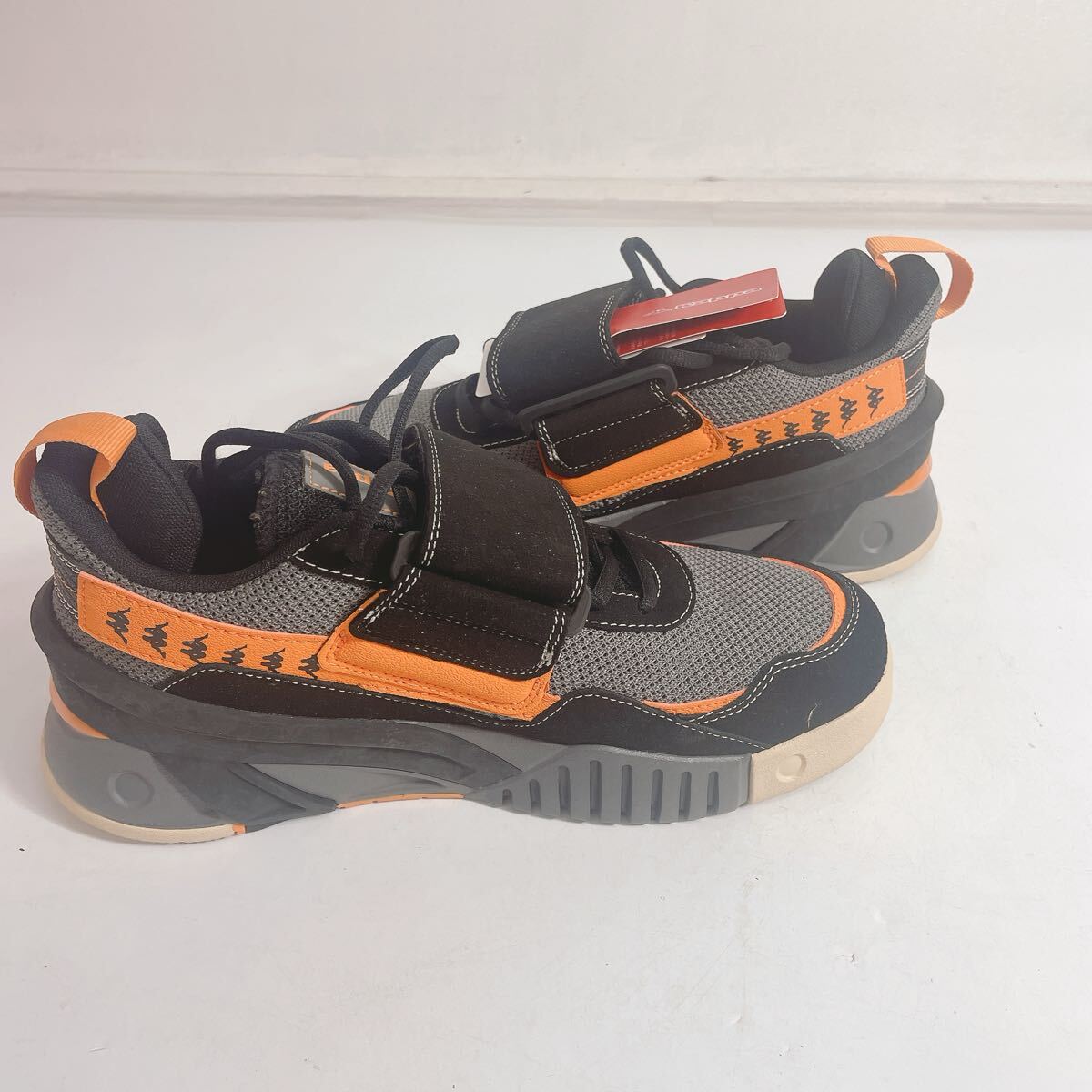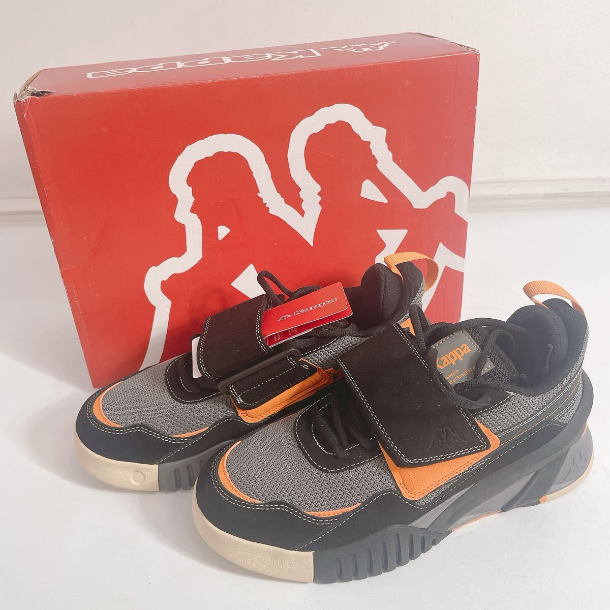 新品・保管品◆Kappa/カッパ ベルクロ厚底スニーカー メンズシューズ 25.0cm ブラック×オレンジ 箱付き◆A4-K |