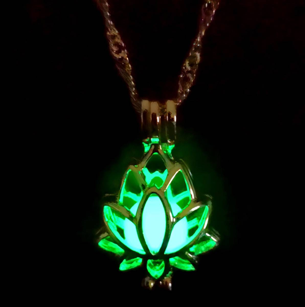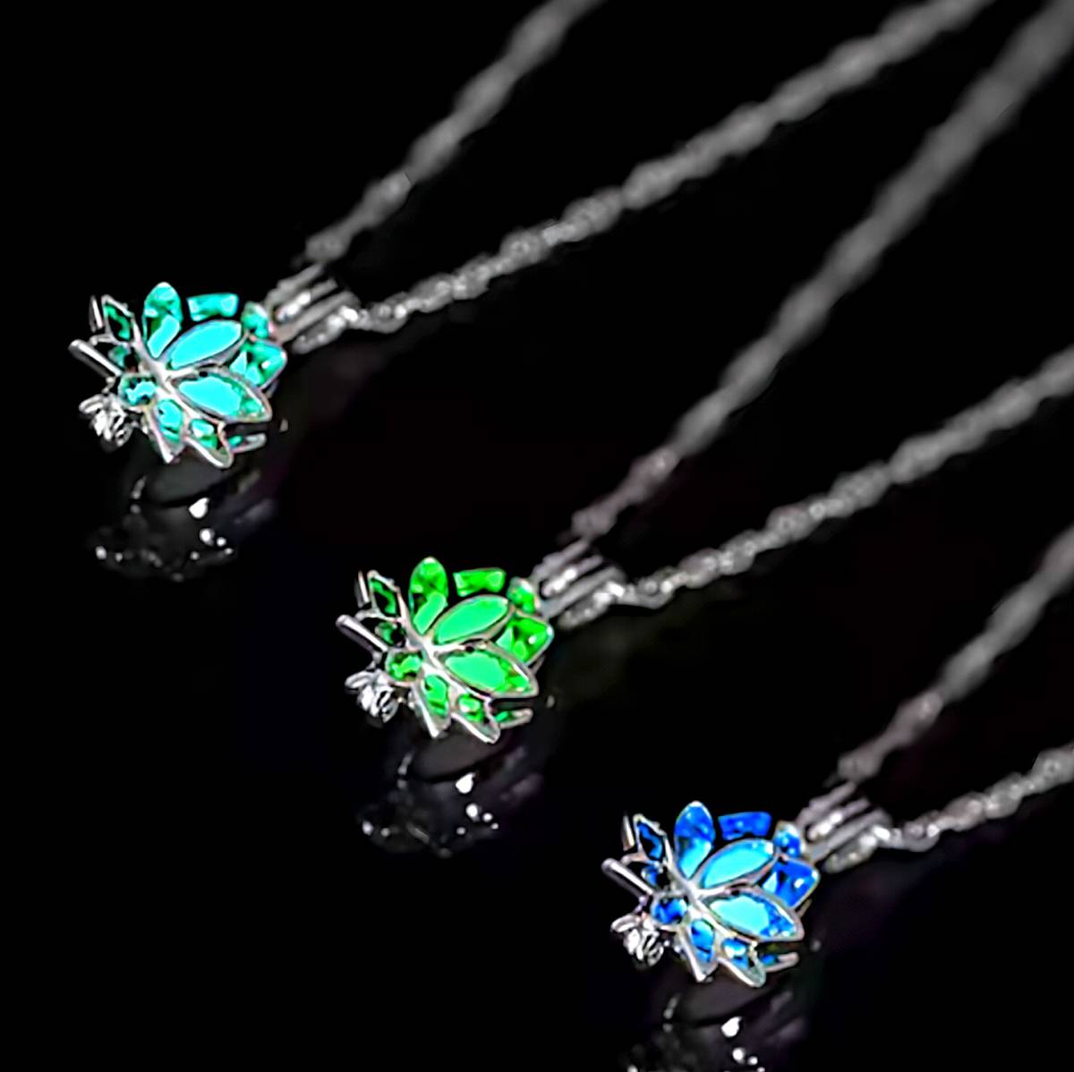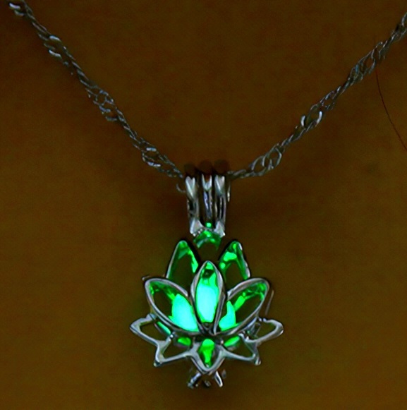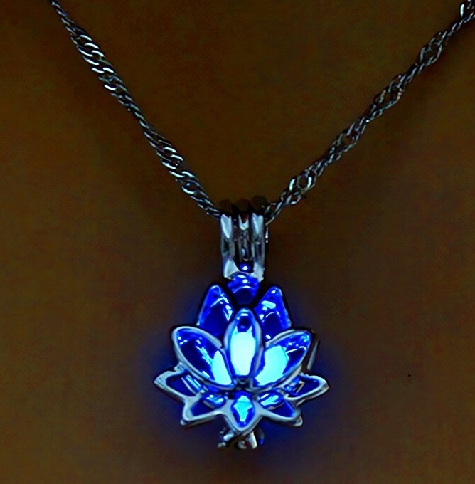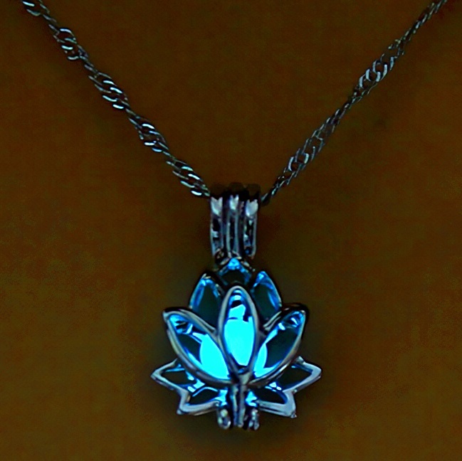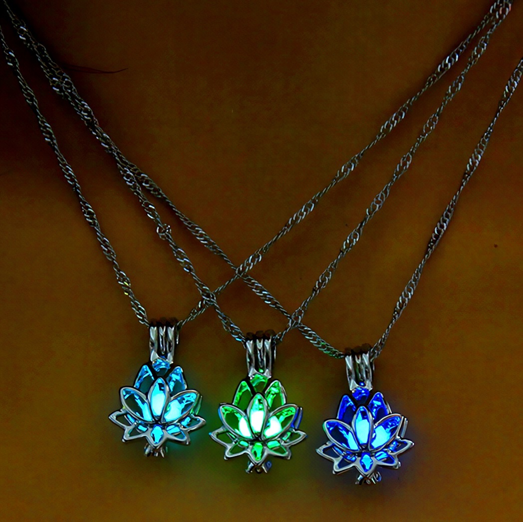 新品★送料無料★暗闇発光3色緑青水 休養 蓮の花 彫刻プラチナ仕上925シルバーネックレス誕生日プレゼント旅行連休初春ギフト国内発送