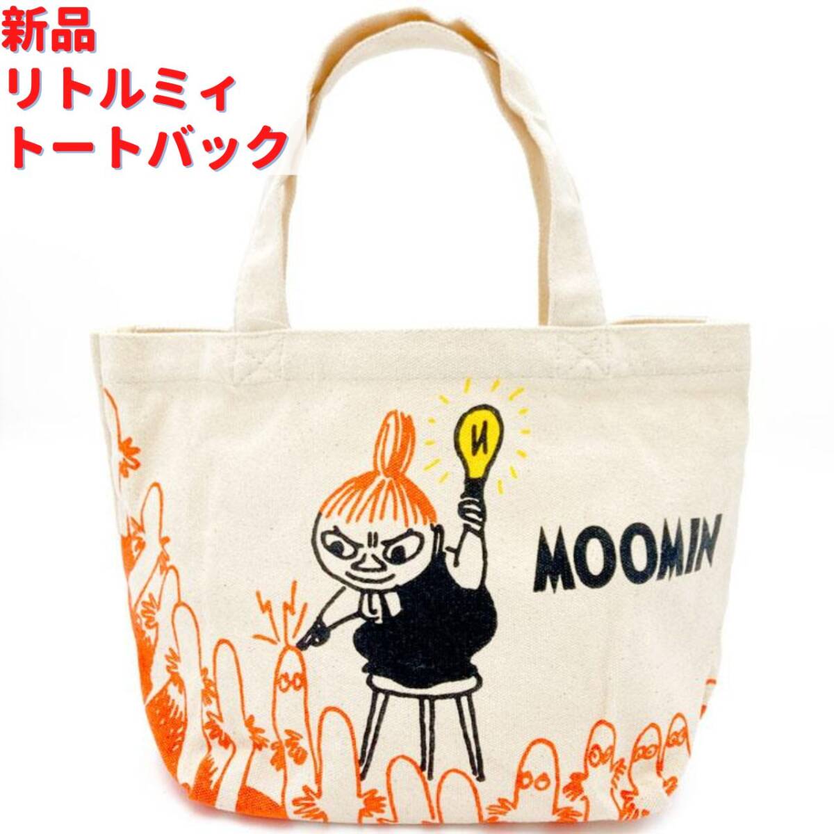 ムーミンの人気キャラクター「リトルミイ」と電球のデザインが特徴的なマチ付きバッグ。可愛らしいイラストがプリントされ、シンプルながらも個性的なデザインが魅力。
