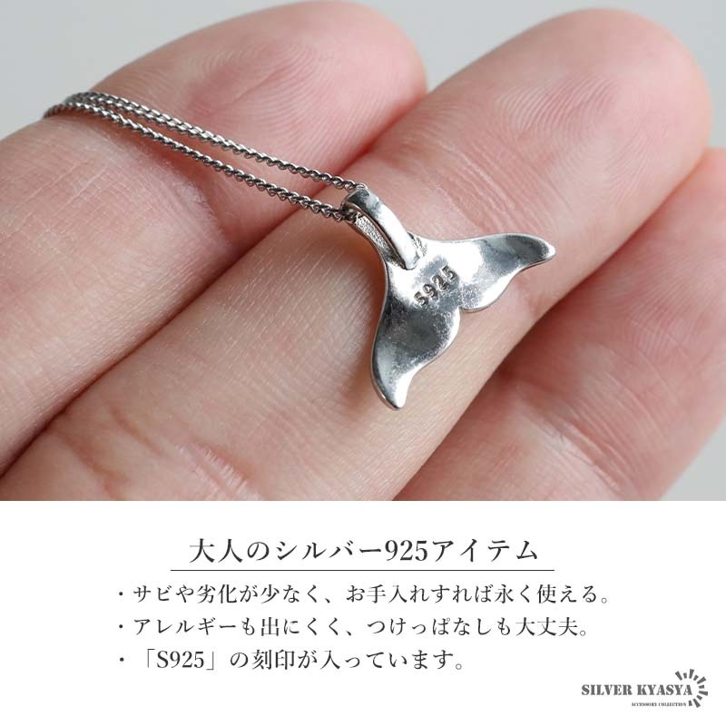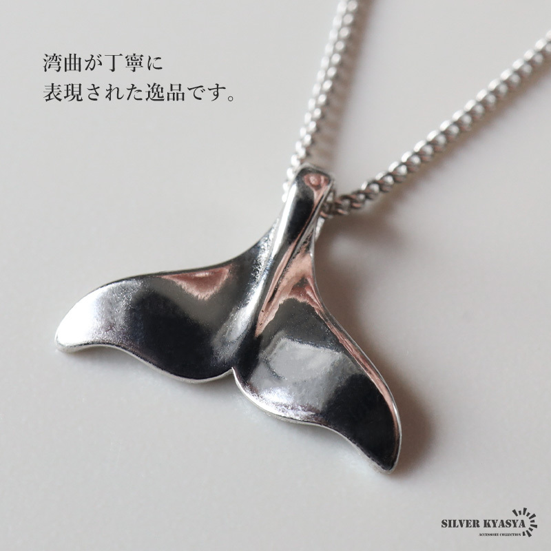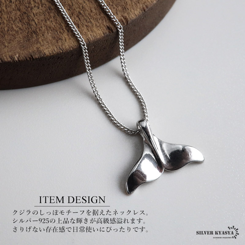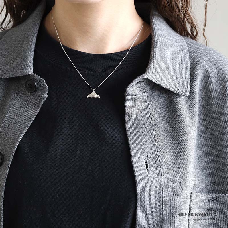 クジラのしっぽモチーフを据えたネックレス。シルバー925の上品な輝きが高級感溢れます。さりげない存在感で日常使いにぴったりです。
