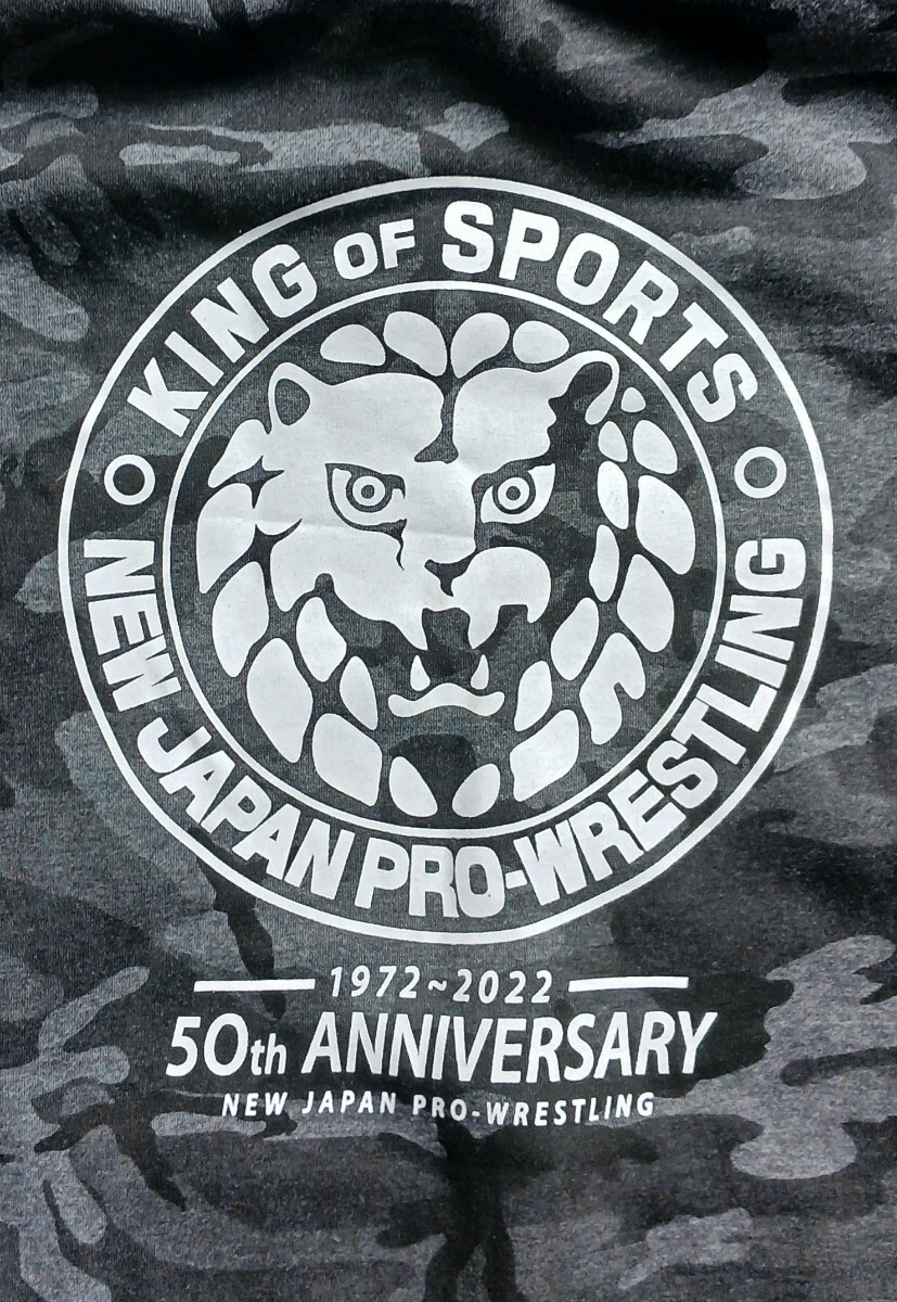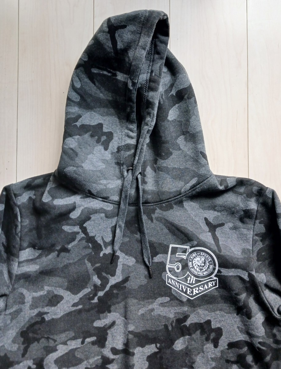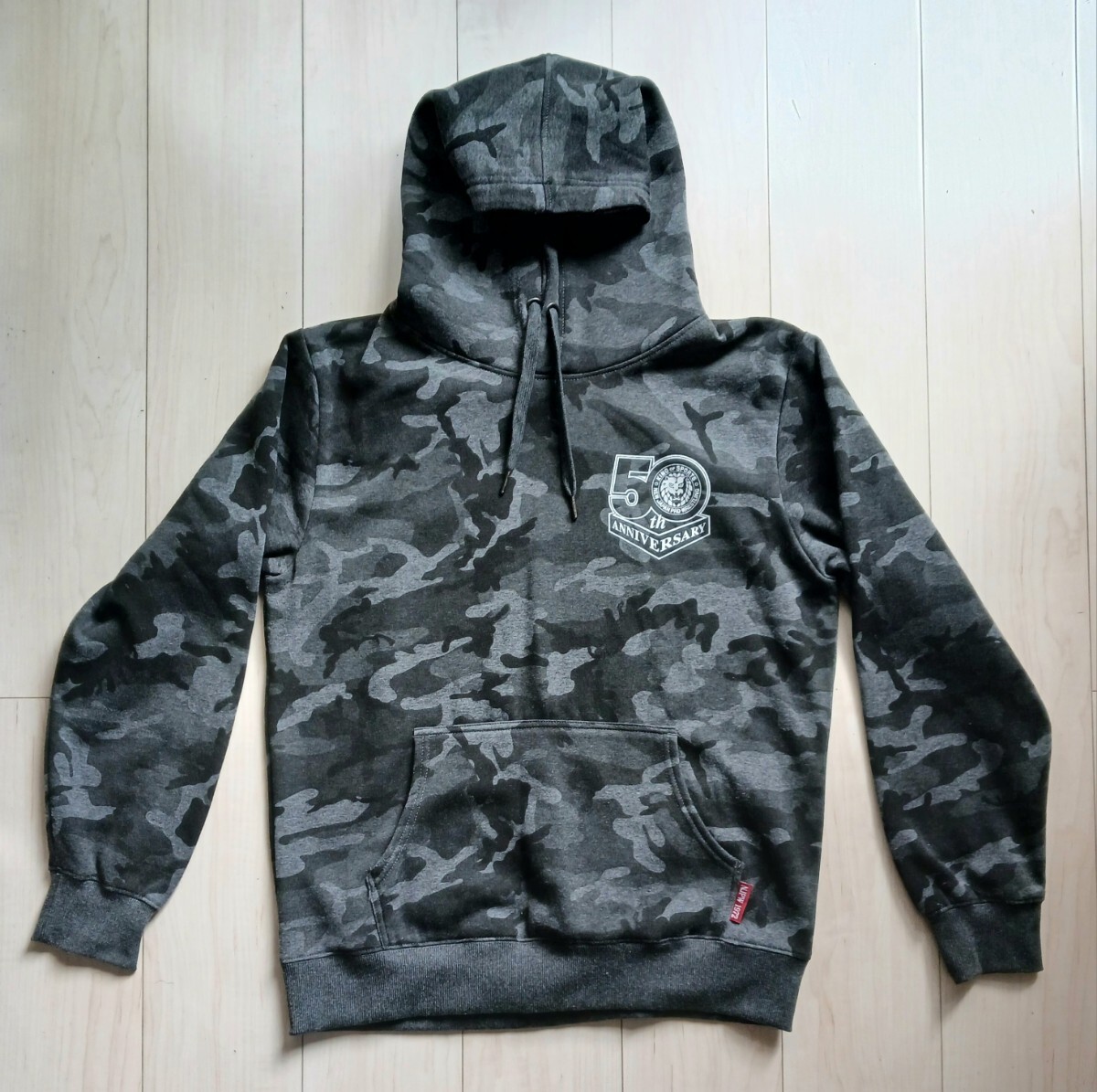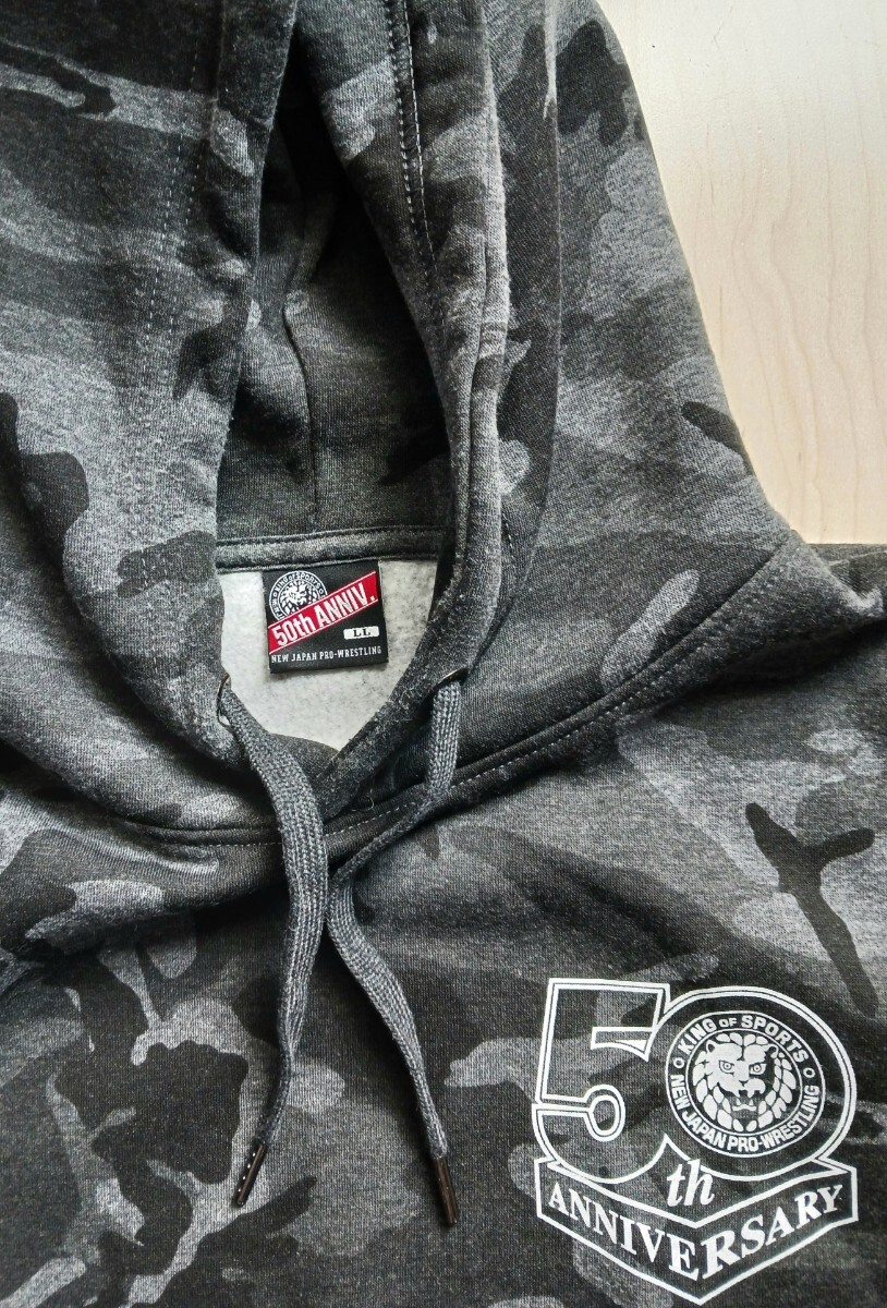 新日本 プロレス LL XL 50周年記念 フーディー パーカー 迷彩 カモ 黒 灰 ブラック グレー カモフラージュ 50 th anniversary