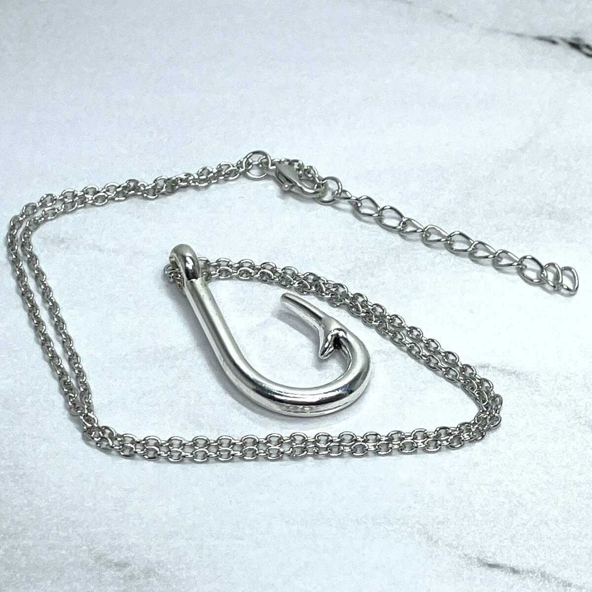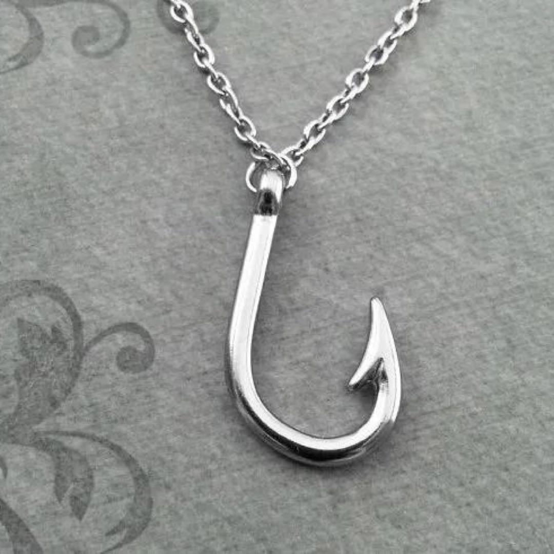 シルバー ネックレス フィッシュフック 釣り針 ハワイアン おしゃれ かっこいい サーフスタイル トレンド マリン トロピカル W203-SN