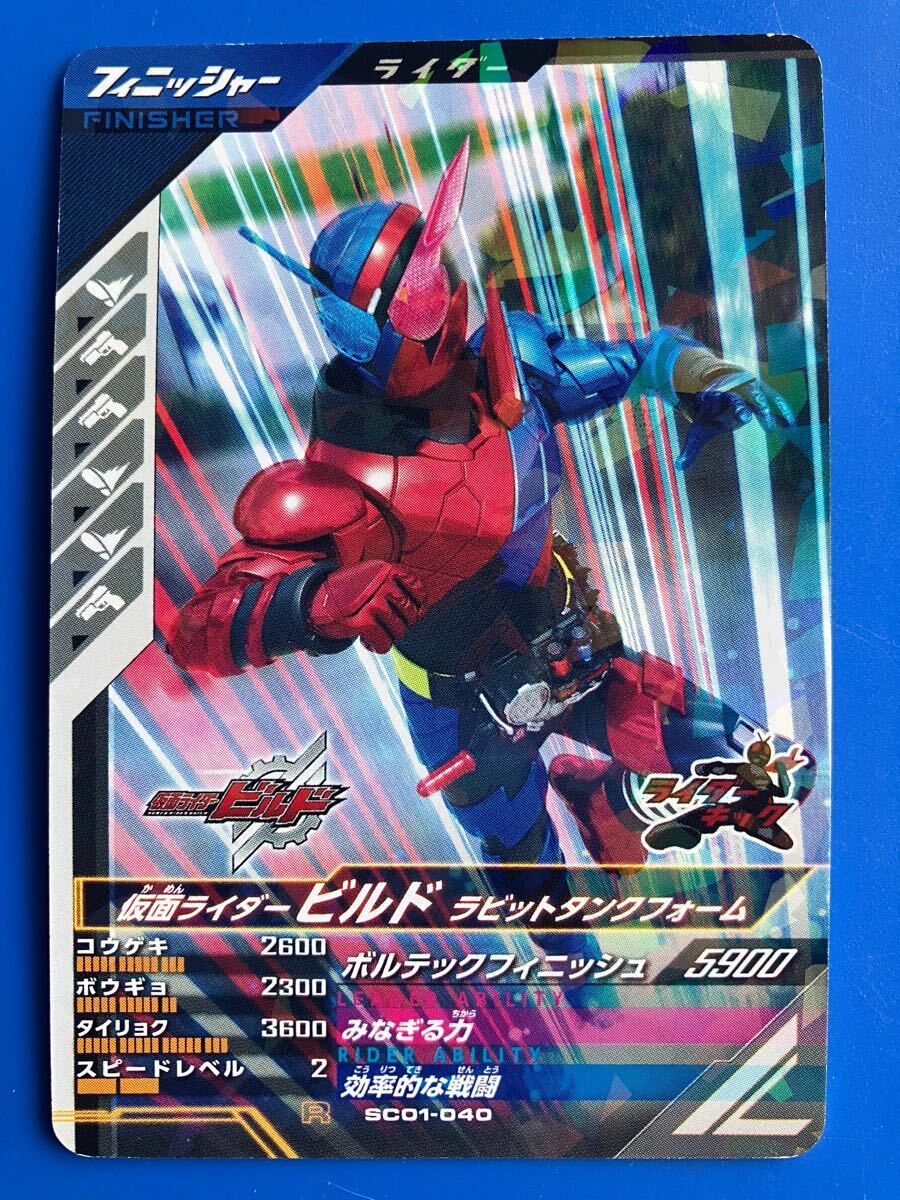 仮面ライダー、ガンバレジェンズの第SC01弾から、No.040、フィニッシャーカード《仮面ライダービルド・ラビットタンクフォーム》の登場です。発送は、普通郵便を利用します。(特にご希望のない場合)おとりまとめも可能ですが、送料に変動する場合がございます。また、送料のご請求は、自宅での計量を基準にご請求させていただいておりますので、実際の金額と差異が出る場合もございます。予めご了承ください。他にも多数出品中です。まとめてこの機会にいかがでしょうか?ご質問お待ちしております。