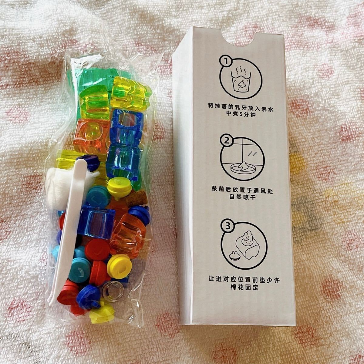 抜けた乳歯をひとつひとつケースに入れて、収納ケースに入れていきます。