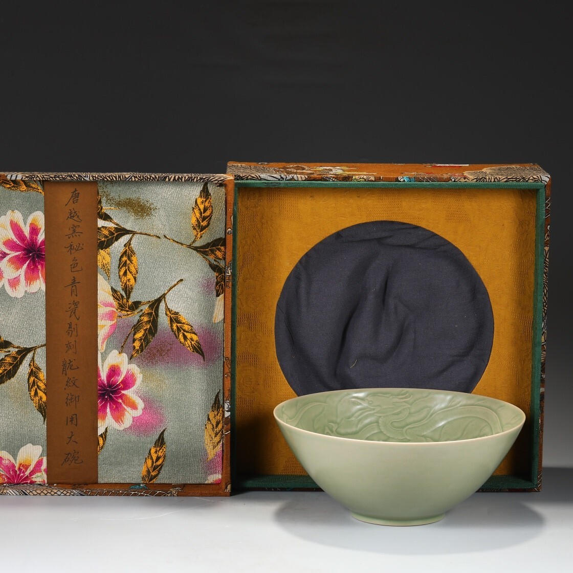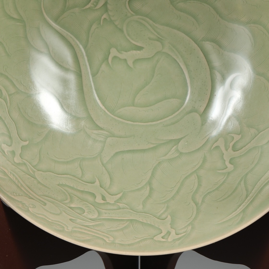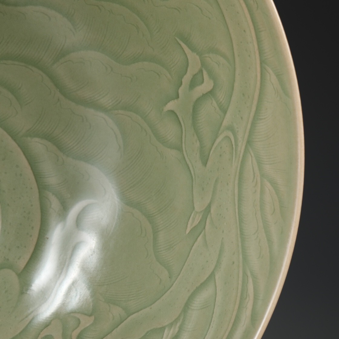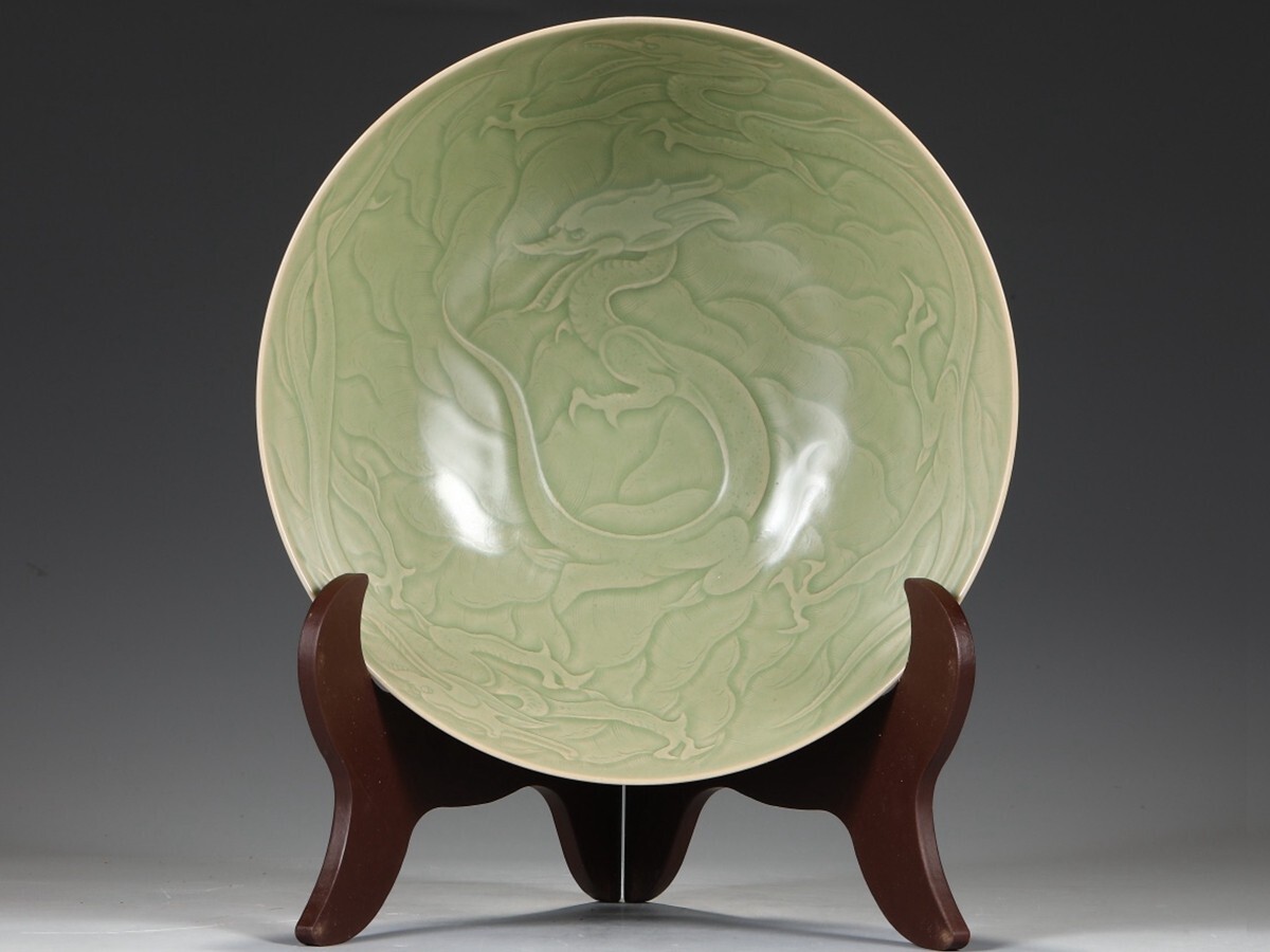 唐代 越窯 陶磁器 秘色青瓷剔刻龍紋大鉢碗【仁】染付 置物擺件 古賞物 古美術 中国古玩 蔵出