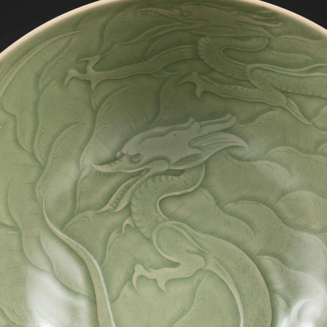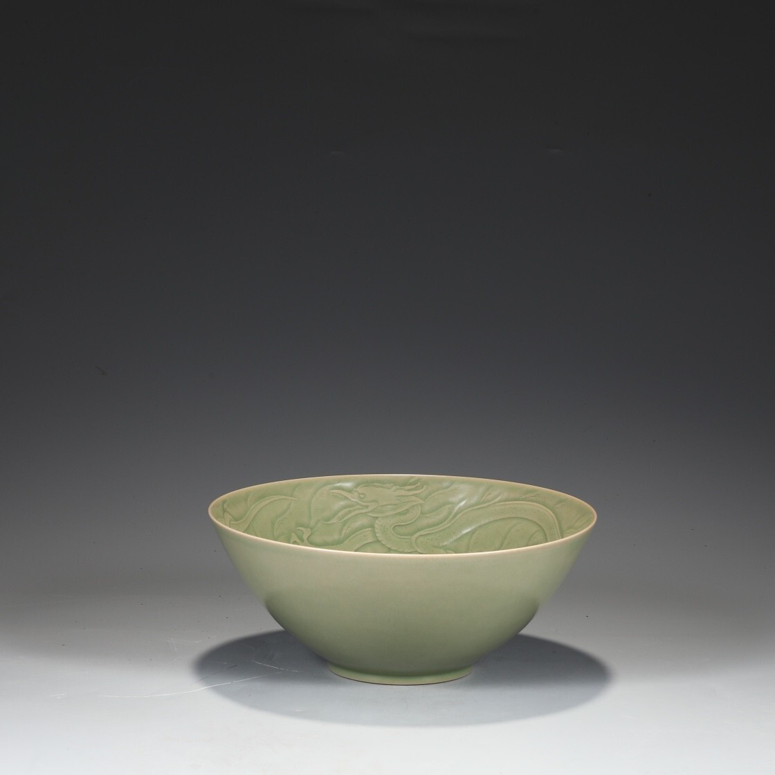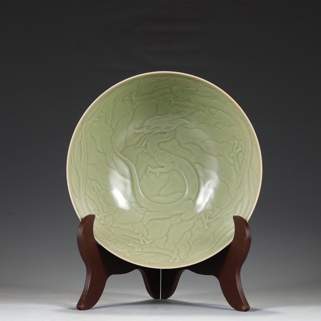 唐代 越窯 陶磁器 秘色青瓷剔刻龍紋大鉢碗【仁】染付 置物擺件 古賞物 古美術 中国古玩 蔵出