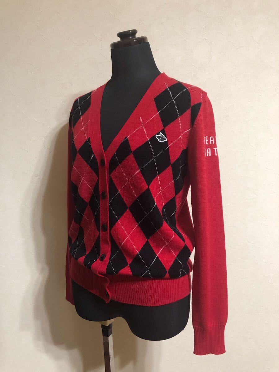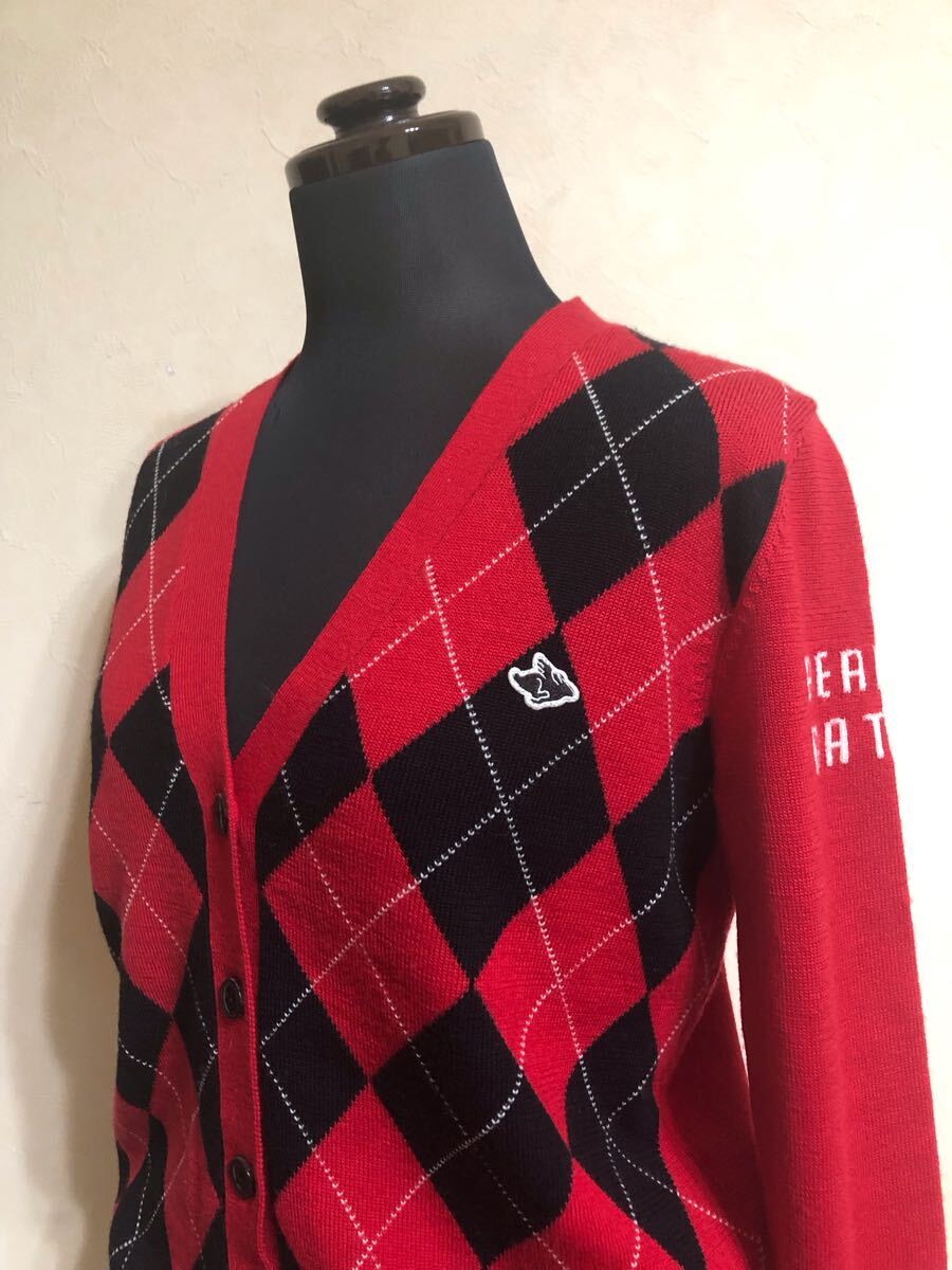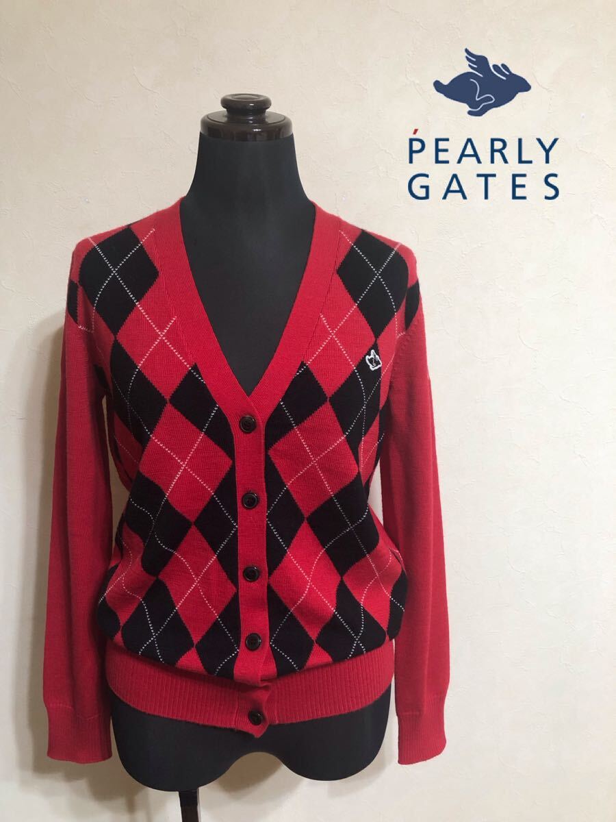 【品名】【良品】 PEARLY GATES GOLF パーリーゲイツ ゴルフ ウェア レディース ウールニット カーディガン アーガイル柄 トップス サイズ0 長袖 赤