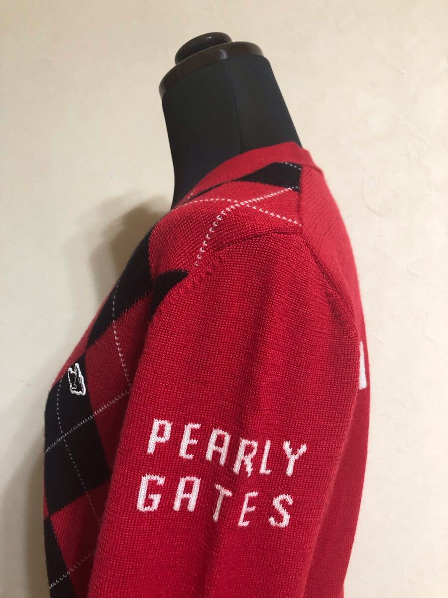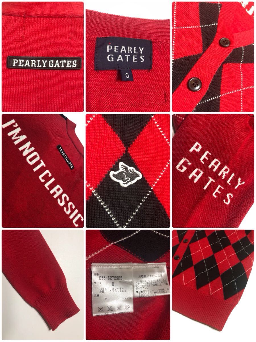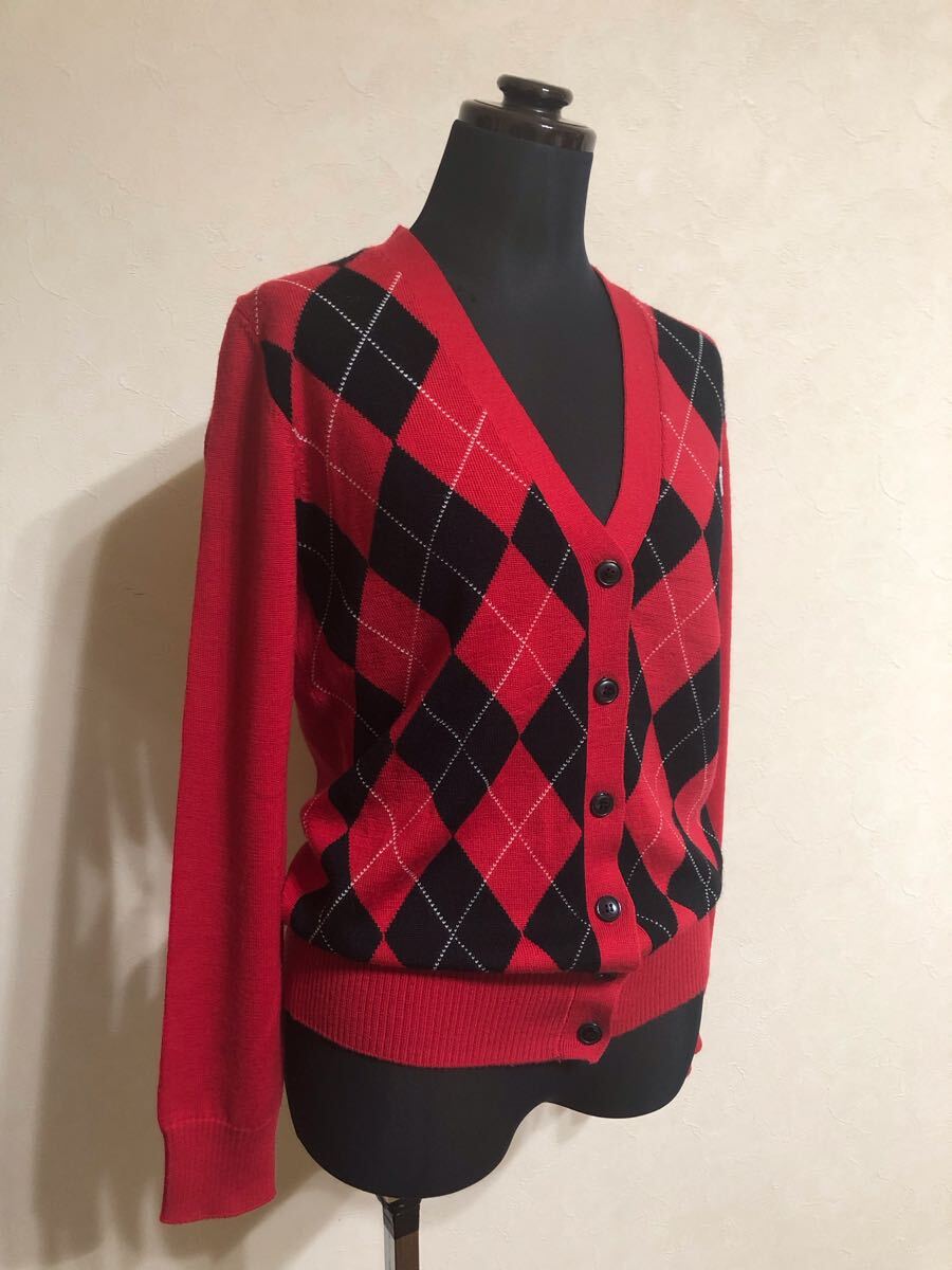 【品名】【良品】 PEARLY GATES GOLF パーリーゲイツ ゴルフ ウェア レディース ウールニット カーディガン アーガイル柄 トップス サイズ0 長袖 赤