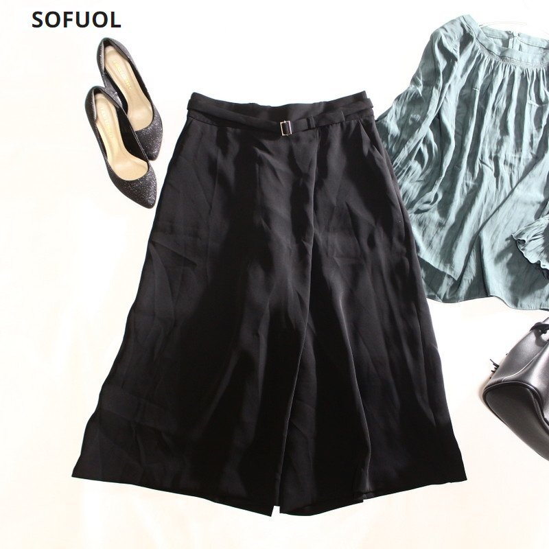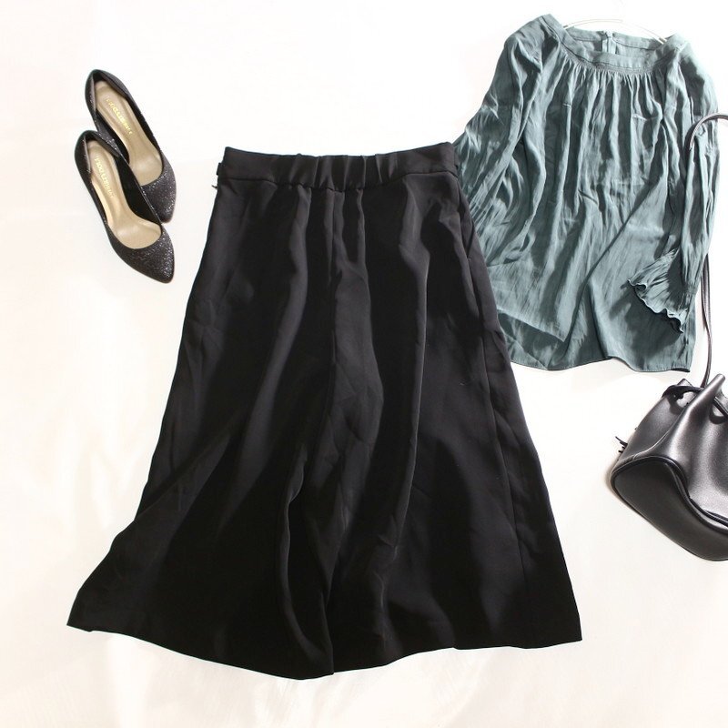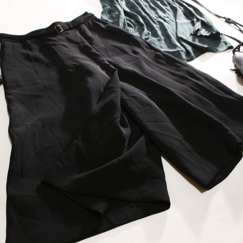美品 SOFUOL ソフール 株) ワールド 合物 ベルト ゆったり フレア ジャージ― スーツ ガウチョ スカーチョ ワイド パンツ M ブラック 黒