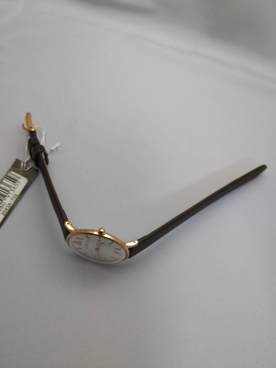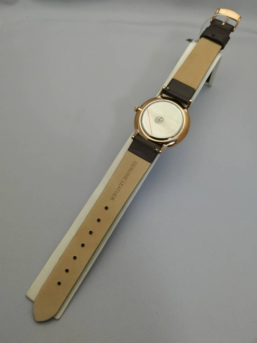 状態:新品 型番:2043A-T02 ムーブメント:クォーツ カラー:文字盤(シャンパンシルバー)、ベルト(ブラウン) 素材:ケース(ブラス)、ベルト(レザー) ケースサイズ:(H×W)約33mm×約33mm(竜頭及びラグ含まず) ベルト幅:約16mm ベルトサイズ:腕回り最大約18.5cm 付属品:ギフトボックス |