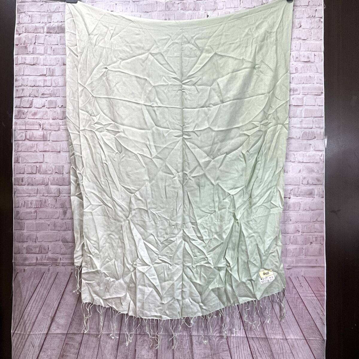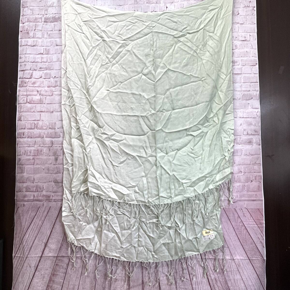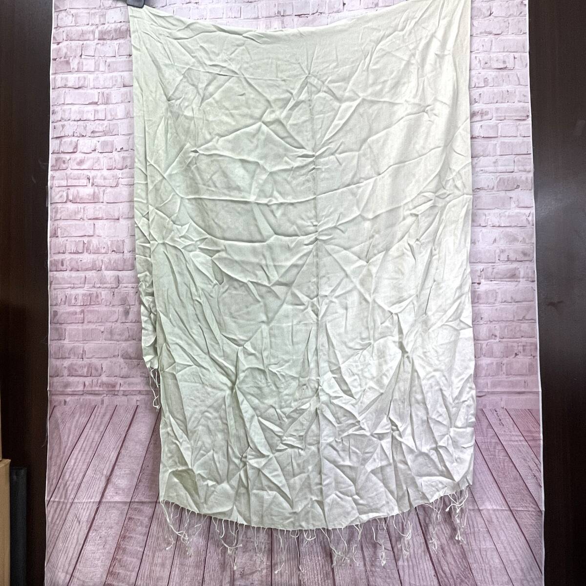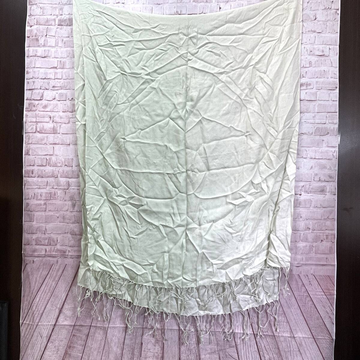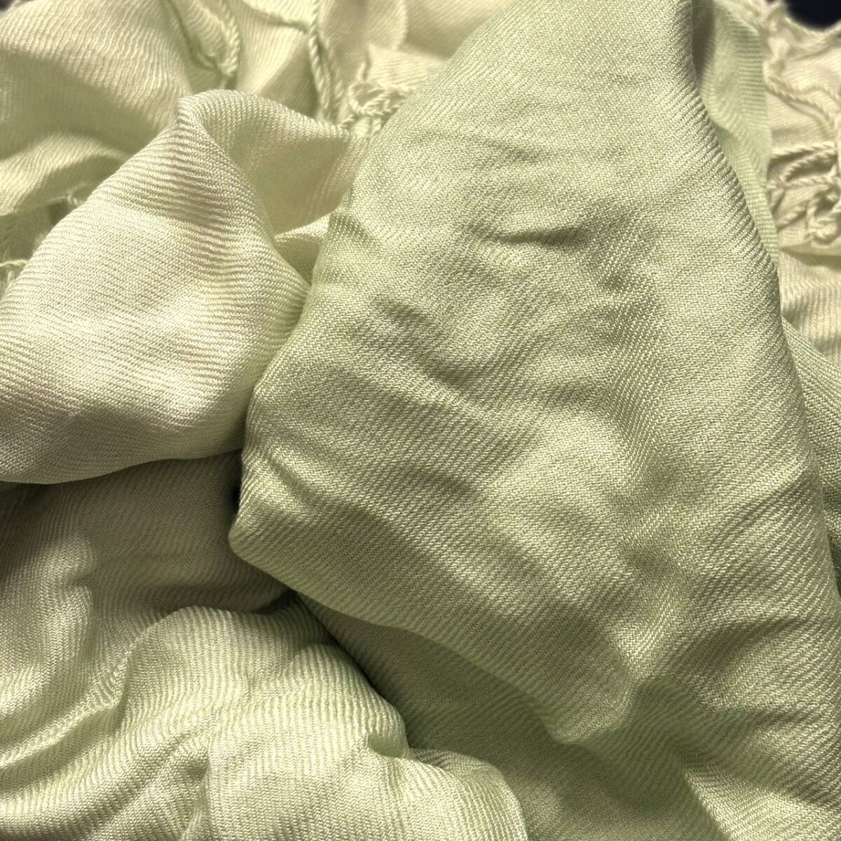 大判 ストール フリンジ ライトグリーン系 グラデーション 無地 シンプル シルク100% ラグジュアリー エレガント