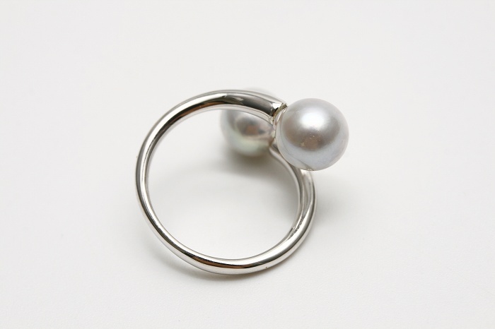 | アコヤダブルリングです。 2粒リングは1粒リングとはまた違った雰囲気をお楽しみ頂けますよ(^^) 爽やかなグレーカラーの色合いに仕上がっています。 リングサイズは調整可能のフリータイプとなっておりますので色々な指につけてお楽しみ下さい♪♪ | |