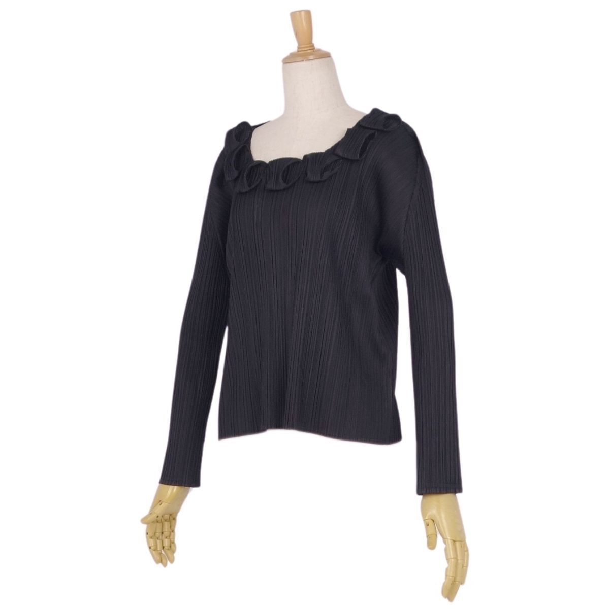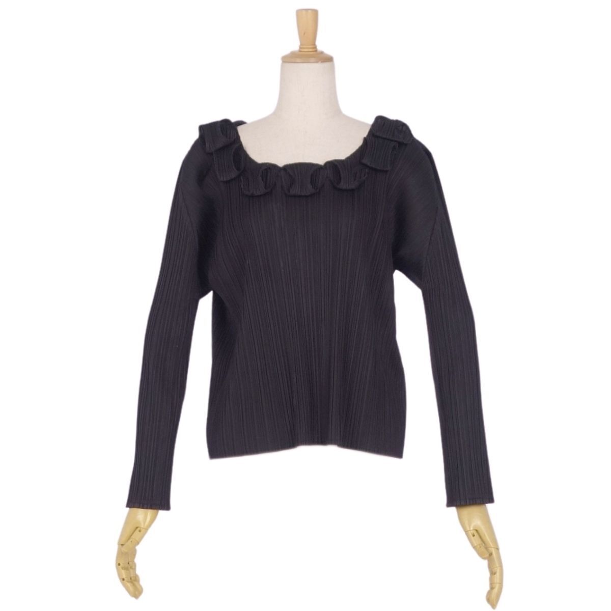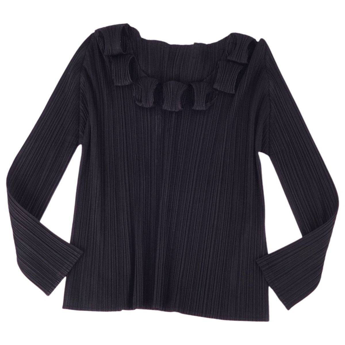 | 美品 プリーツプリーズ イッセイミヤケ PLEATS PLEASE シャツ ブラウス ロングスリーブ 無地 トップス 3(L相当)ブラック |
